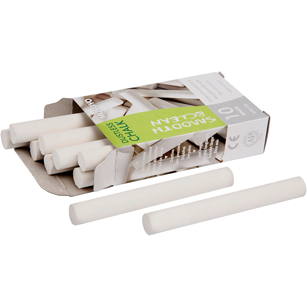 Wit schoolbordkrijt, lengte 8 cm, doorsnede 10 mm, 10 stuks.