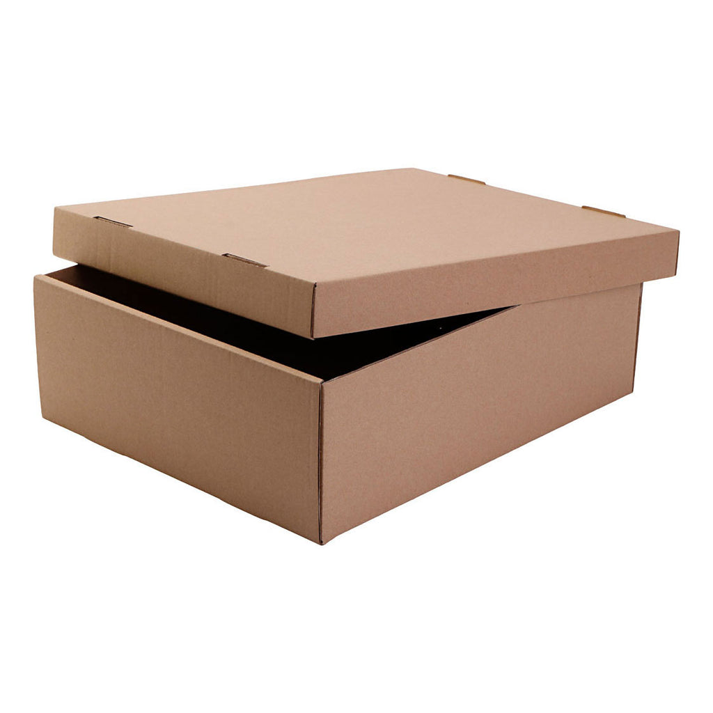 Stevige bruine kartonnen doos met deksel. Kan worden gebruikt als leerling- en klasbox voor het opbergen van afgewerkt werk of materialen. Wordt ongemonteerd geleverd. Makkelijk in elkaar te zetten