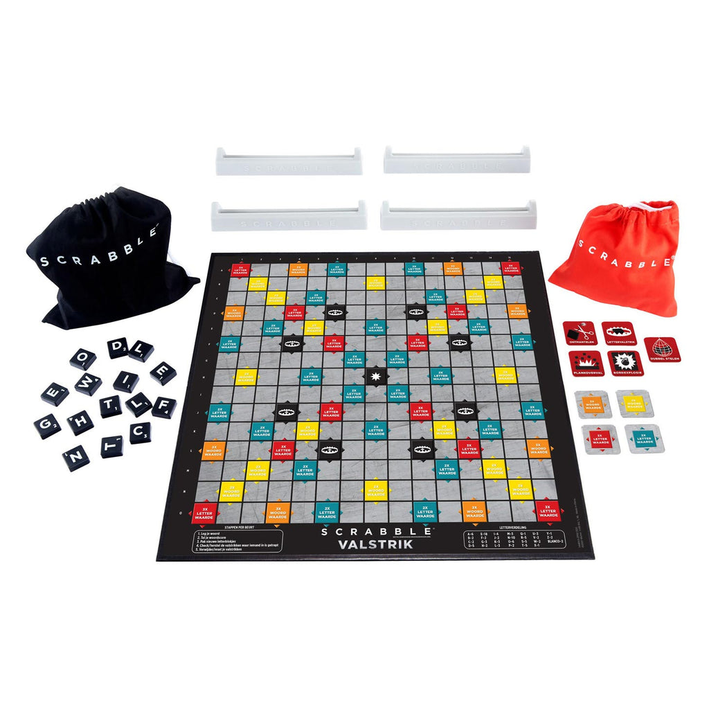 Dit Scrabble Valstrik woord-tegelspel krijgt een explosieve wending met de toevoeging van Trigger- en Trap-tegels die speciale vaardigheden activeren, zoals het stelen van punten of het verwijderen van tegels, waardoor slimme spelers een voordeel krijgen. Bouw woorden om punten te scoren, maar pas op voor de premium vierkanten! Mogelijk is daar een val gezet, waardoor het spel op zijn kop is gezet. Heroverweeg elke ronde, want dit Scrabble®-spel verandert met elke val die wordt ingezet! Kleuren en decoraties kunnen variëren.