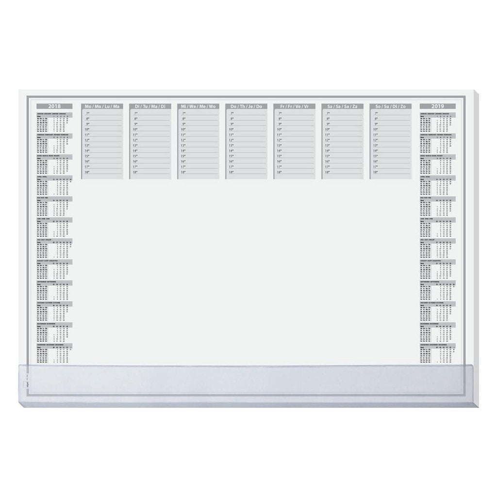 Functionele schrijfonderlegger met transparante kunststof beschermrand aan de onderkant. Actuele kalender voor 2 jaren met overzichtelijke dag- en weekplan met urenindeling en genoeg ruimte voor uw persoonlijke notities. De papier-schrijfonderlegger heeft 40 vel en kan als een afscheurblok worden gebruikt. De stevige verlijming aan de onderkant en gedeeltelijk aan de bovenkant voorkomen dat de hoeken omknikken.