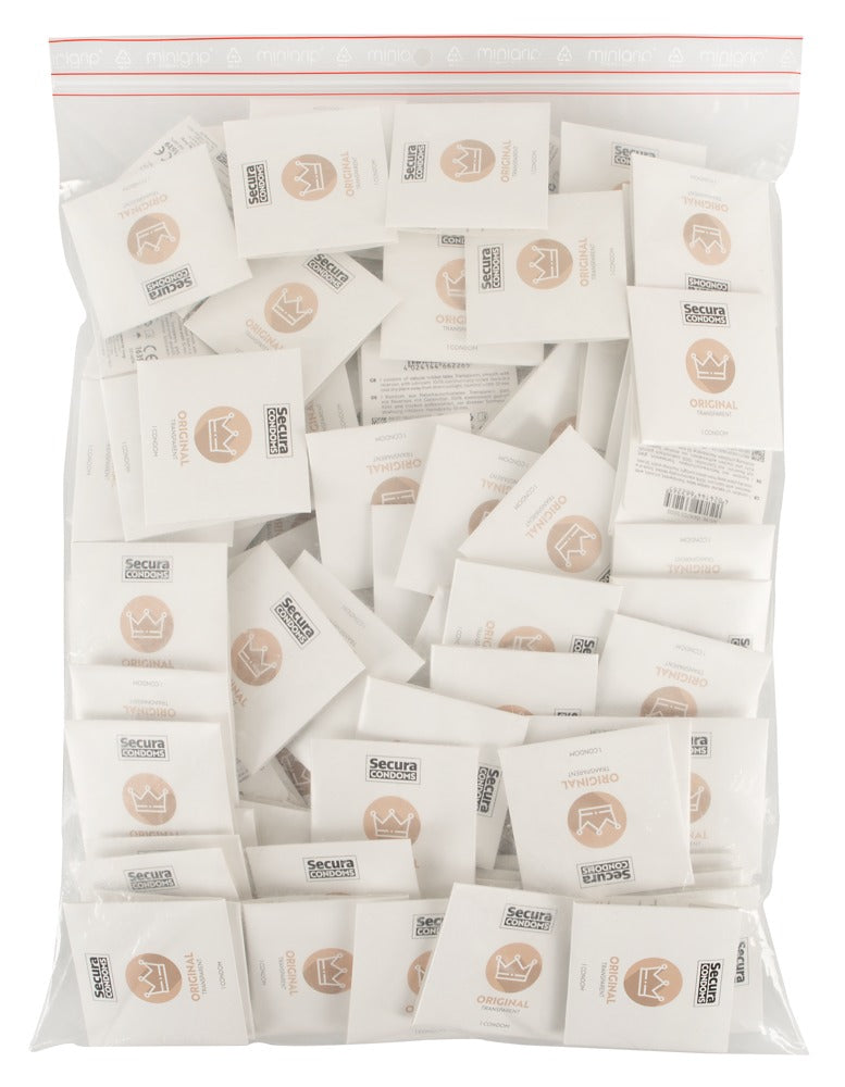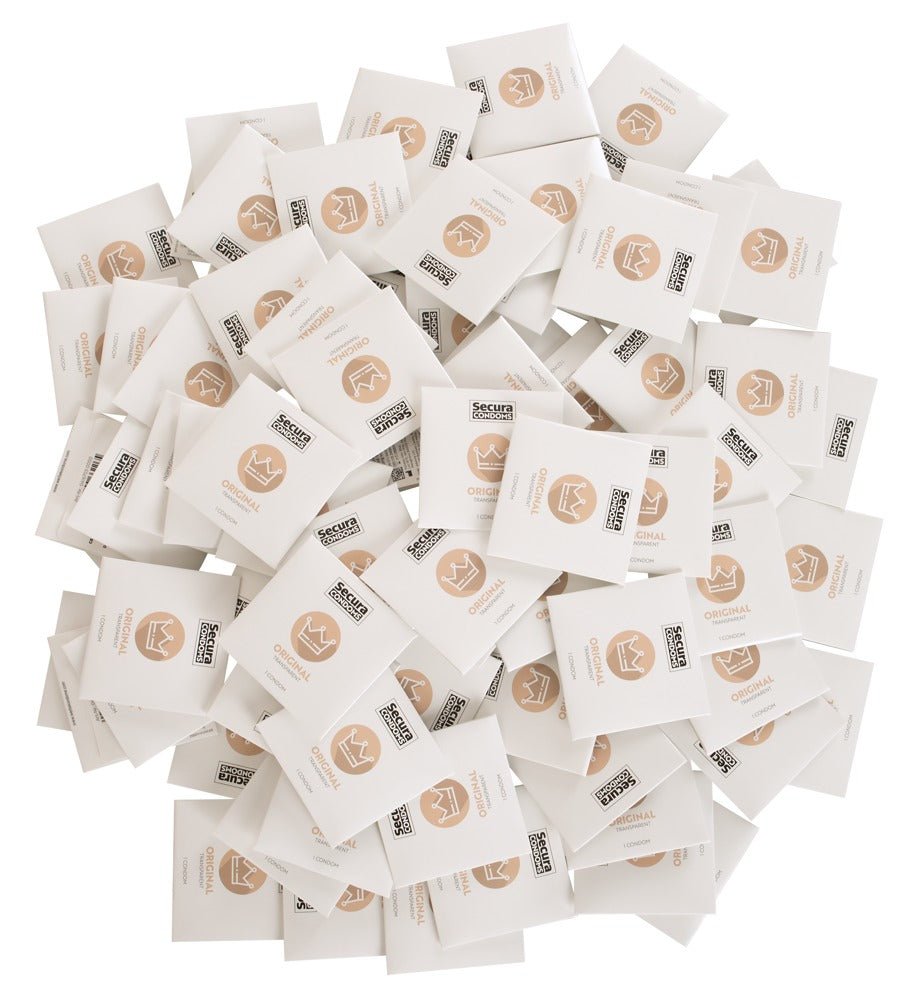Transparante, zijdezachte Original condooms van Secura Condooms. Met vochtinbrengende coating en reservoir op siliconenbasis. Geur- en smaakloos.