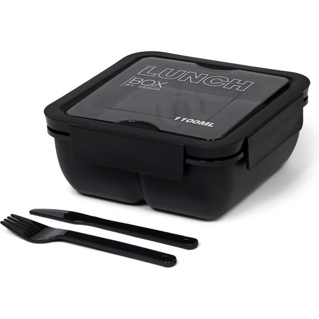 - Bovenste compartiment met transparante deksel biedt ruimte voor een besteksetje en kleine snacks