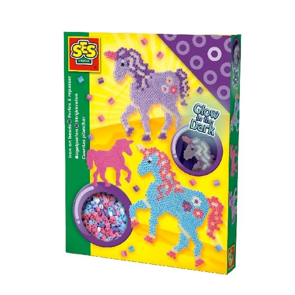 Met deze strijkkralenset maak je een unicorn. Je kunt de voorbeelden onder het transparante bordje leggen, zodat je gemakkelijk de afbeeldingen kunt namaken.