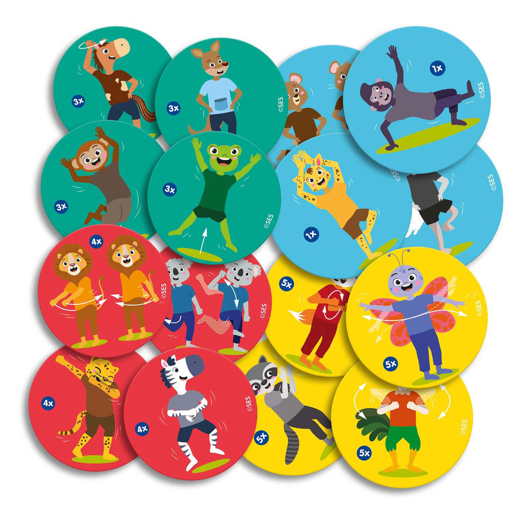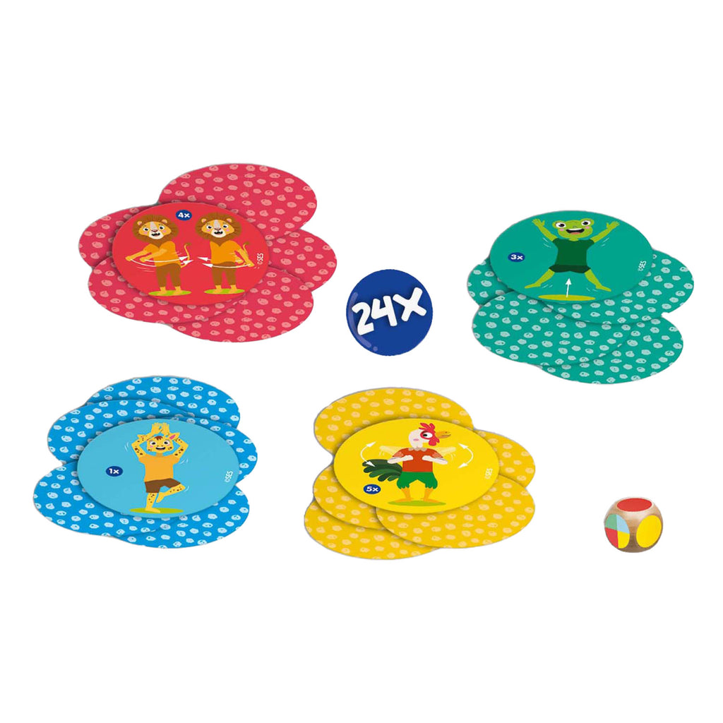 Maak je klaar om te swingen met Animal Dance Moves! Dit leuke en energieke spel brengt je 24 unieke kaarten met spannende dansbewegingen en een kleurrijke dobbelsteen om eindeloze dansroutines te creëren. Het is tijd om je verbeelding de vrije loop te laten en te dansen als je favoriete dieren!Duik in een wereld waar creativiteit en fysieke activiteit naadloos samenkomen. Dit spel is perfect om actief te blijven terwijl je veel plezier hebt. Met kaarten die zijn verdeeld in vier levendige kleurcategorieën, kun je mixen en matchen om je eigen dansen te bedenken. Gooi gewoon de kleurendobbelsteen, kies de bijbehorende kaarten, en zie hoe je unieke dansroutine tot leven komt!De set bevat 24 ronde dansbewegingkaarten en een kleurendobbelsteen. Elke kaart toont een andere door dieren geïnspireerde dansbeweging, die je aanmoedigt de acties na te bootsen en je innerlijke danser naar boven te halen. Gooi de dobbelsteen om te zien welke kleur er verschijnt, kies een kaart uit die kleurcategorie en voeg de beweging toe aan je dansreeks. Herhaal dit proces om een leuke en funky routine te creëren die helemaal van jou is.Het spelen van Animal Dance Moves gaat niet alleen om plezier. Het helpt ook bij het verbeteren van de coördinatie, stimuleert fysieke activiteit en prikkelt je creativiteit. Bovendien is het een fantastische manier om tijd door te brengen met vrienden of familie, samen te lachen en te dansen terwijl je hilarische en vermakelijke routines bedenkt.Klaar om te dansen? Pak je Animal Dance Moves kaarten, gooi de dobbelsteen en begin je eigen wilde danssequenties te creëren. Het is tijd om te bewegen, swingen en je dansvloerfantasie de vrije loop te laten!