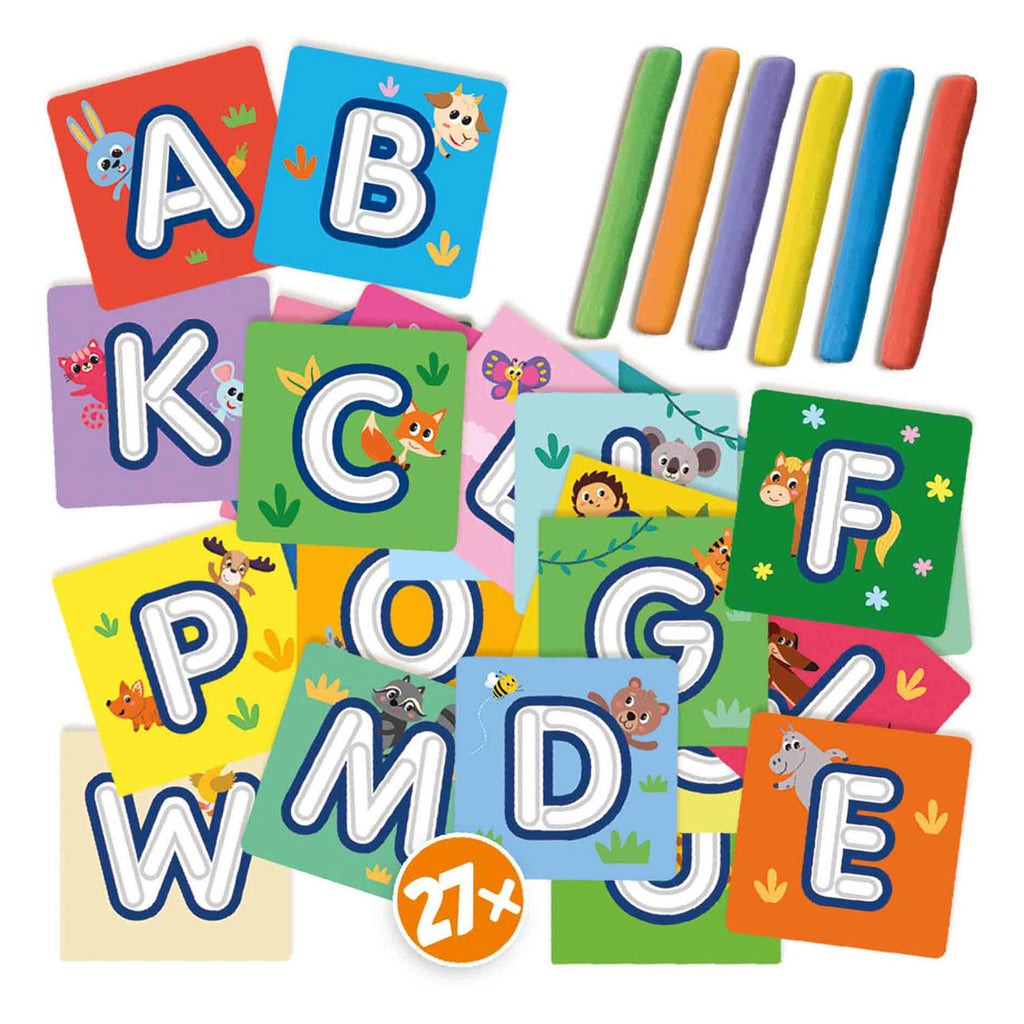 Het ABC is nog nooit zo makkelijk geweest om te leren. Kinderen kunnen actief bezig gaan met de letters en spelenderwijs het alfabet ontdekken. Iedere letter staat op een aparte kaart. Met de 6 kleuren boetseerklei kunnen de kinderen één voor één de letters kleien. Met de verschillende letterkaarten op een rij zijn zelfs korte woorden of namen te maken.