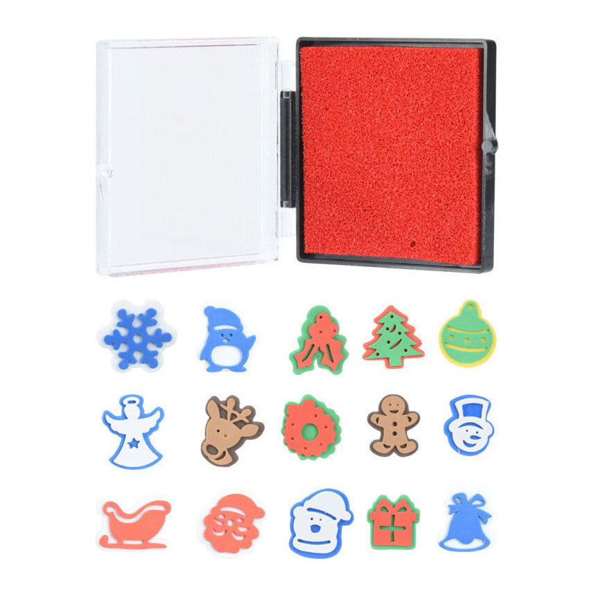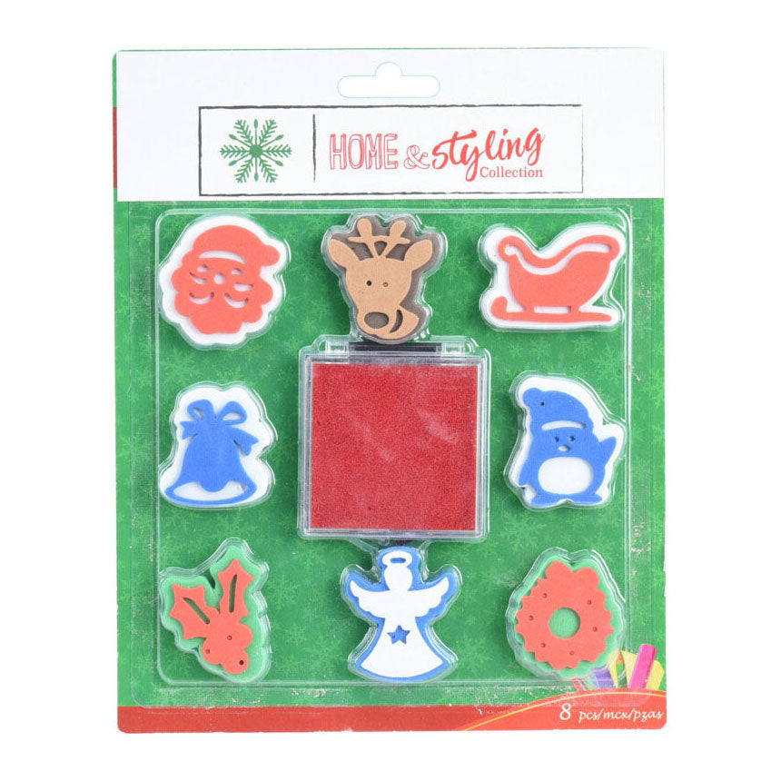 Kerst stempelset met 8 kerststempels en 1 rood stempelkussen. Geschikt vanaf 3 jaar.