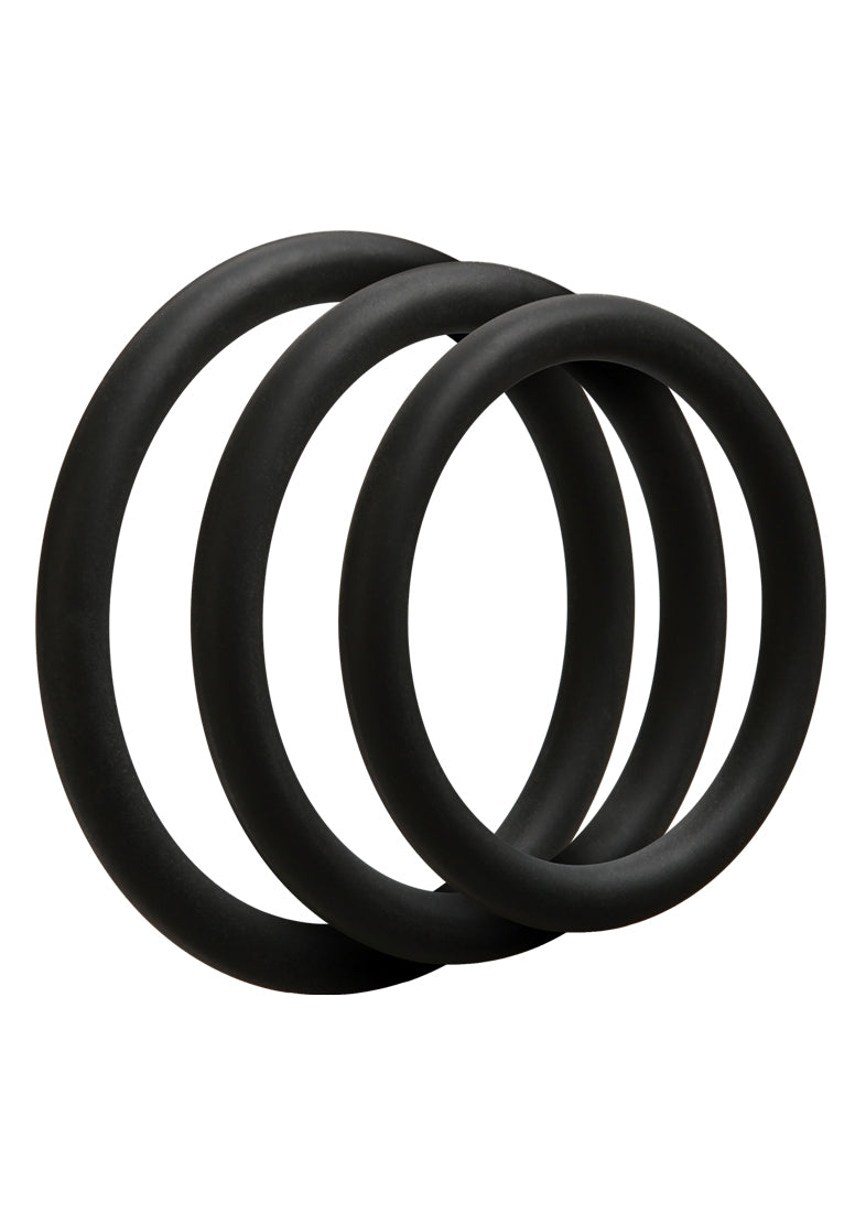 Optimaliseer je ervaring met deze siliconen cockringen! De OptiMALE Thin C-Ring Set biedt verbeterde omvang en omtrek met drie ringen in 40mm, 45mm, en 50mm diameter. Deze ringen zijn ultra rekbaar voor gemakkelijk gebruik rond de schacht of testikels, voor het behoud van die langdurige erecties waar je altijd van gedroomd hebt, en voor een langere ejaculatie. Verkrijgbaar in zwart en leisteen; ftalaatvrije siliconen.