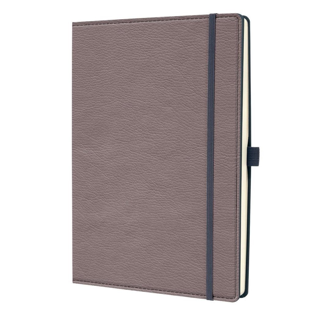 Het mooie design-notitieboek in uitzonderlijke stijl, voelbaar en zichtbaar uniek, overtuigt door de hoogwaardige kwaliteit en de praktische functies. Notities efficiënt georganiseerd en steeds bij de hand - met het stijlvolle notitieboek gelinieerd in het formaat ca. A4 met 194 pagina's (daarvan 20 geperforeerd). De stevige hardcover band in taupe garandeert stabiliteit bij het schrijven en de sluiting van elastiek houdt alles veilig bewaard. Trendy retro-design van de internationaal bekroonde Conceptum-serie in lederlook met soft-touch-coating - tastbaar en zichtbaar uniek.De hoogwaardige gestikte binding zorgt ervoor dat het boek in geopende toestand volledig plat ligt en zorgt voor een lange levensduur van het product. Chamoiskleurig papier, bedrukt in hoogwaardig grijs. Inhoudsopgave en genummerde pagina's voor een duidelijke organisatie van uw notities. Sluiting van elastiek, pennenlus, quickpocket, archiefvak, 2 leeslinten.