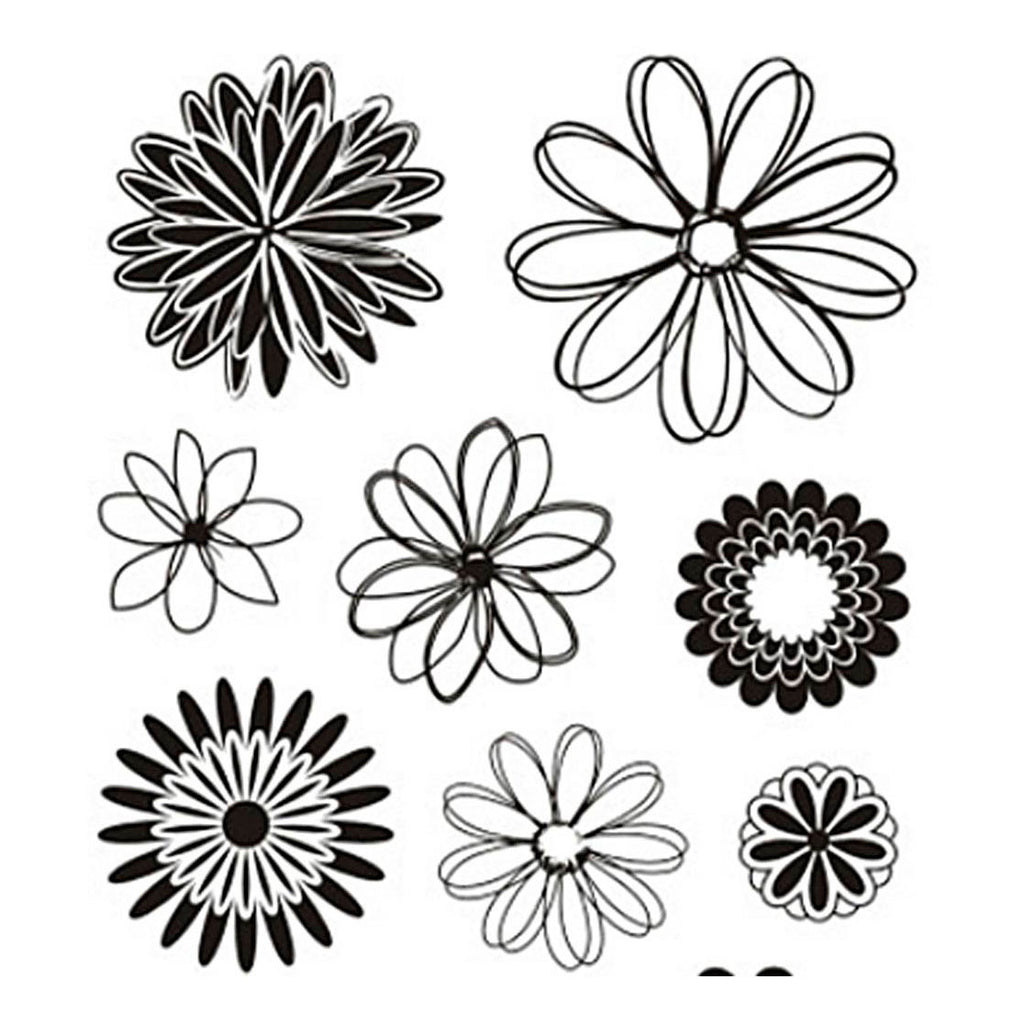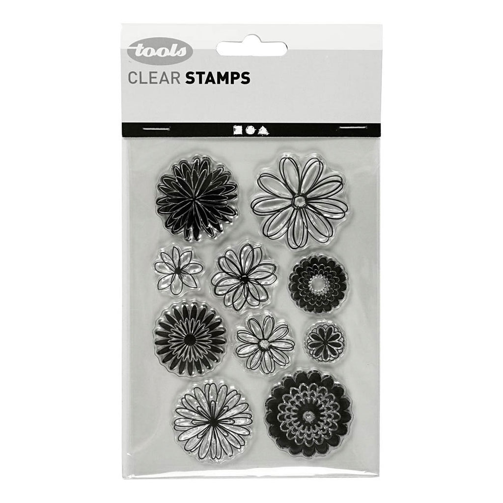 Vel met verschillende motieven silicone stempels. Te gebruiken met een acryl stempelblok (artikelnr. 6023031).