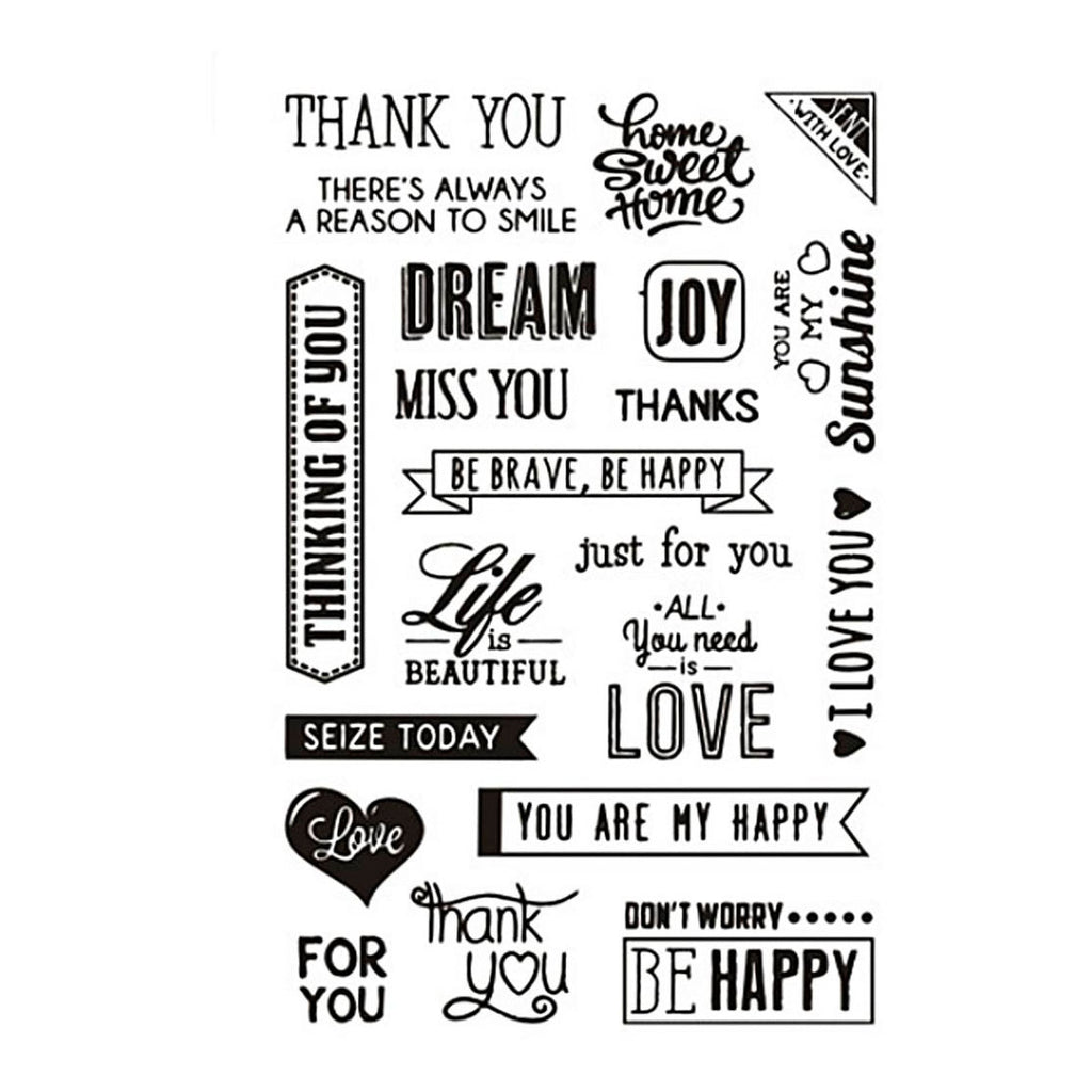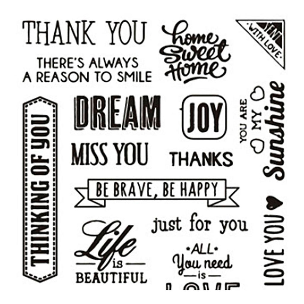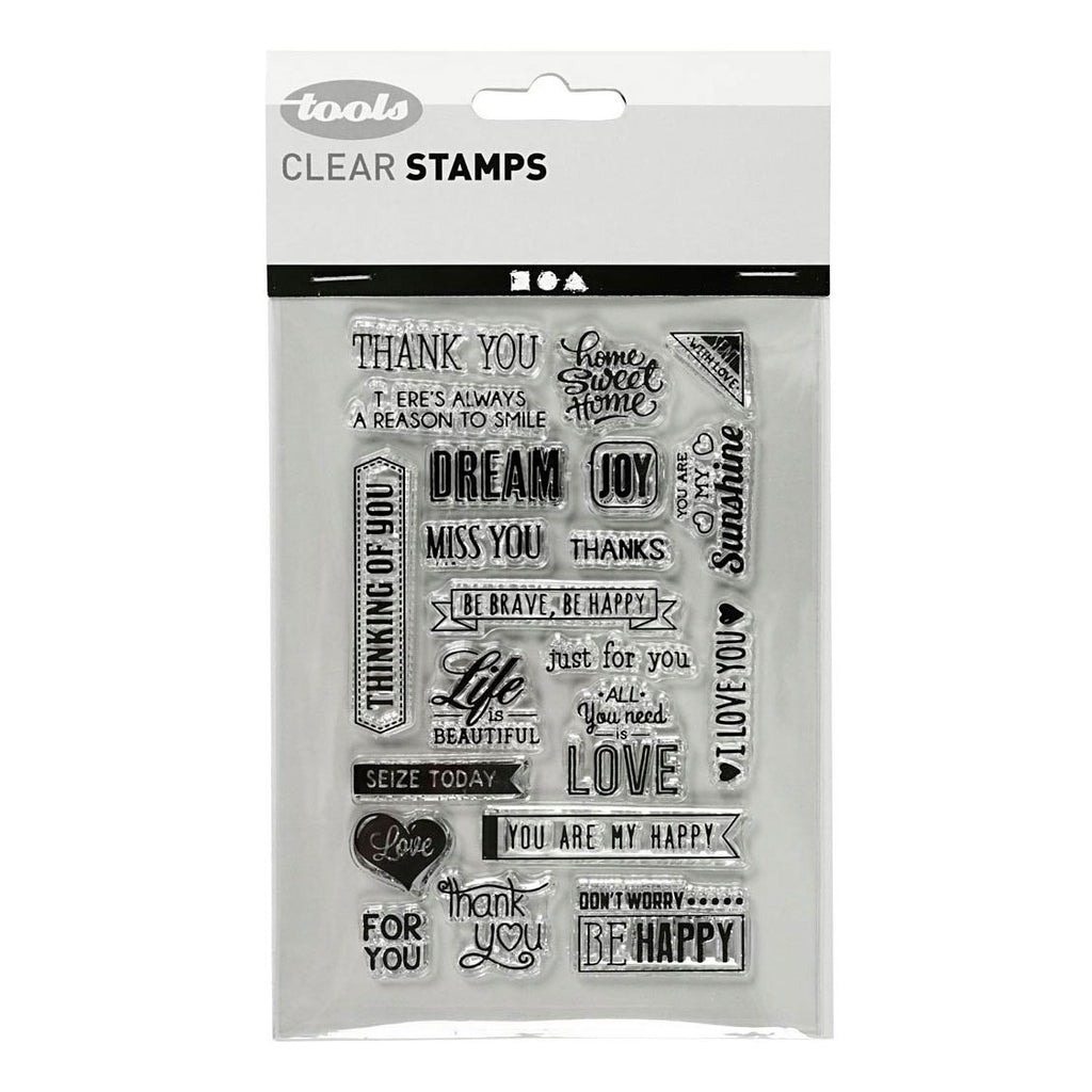 Vel met verschillende motieven silicone stempels. Te gebruiken met een acryl stempelblok (artikelnr. 6023031).