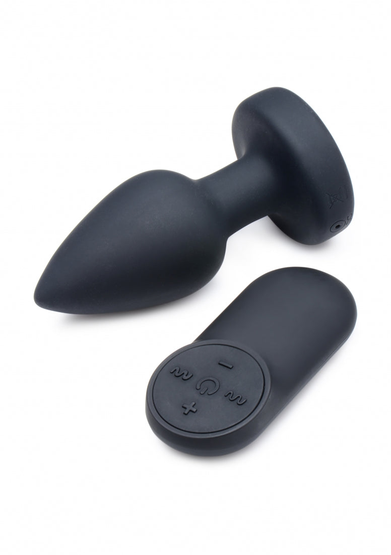 Laat een sexy achterdeur lichtshow zien! Deze ruime plug nestelt zich tussen je wangen en zoemt je kontje met 7 standen krachtige vibratie. Ondertussen zullen 5 verschillende LED lichtkleuren uit je anus flitsen in een psychedelische opeenvolging, met 3 snelheden van strobing om uit te kiezen. Gebruik de afstandsbediening om gemakkelijk de instellingen van beide functies te doorlopen, of geef de macht over aan je partner. De taps toelopende tip en zijdezachte siliconen zorgen voor een comfortabele inbrenging. Dit is een geweldige plug voor een kinky raver of iedereen die in het donker wil bukken en zijn partner wil verrassen. Behoud het hoogwaardige, ftalaatvrije materiaal door gebruik met siliconen glijmiddelen te vermijden en schoon te maken met milde zeep of toycleaner.