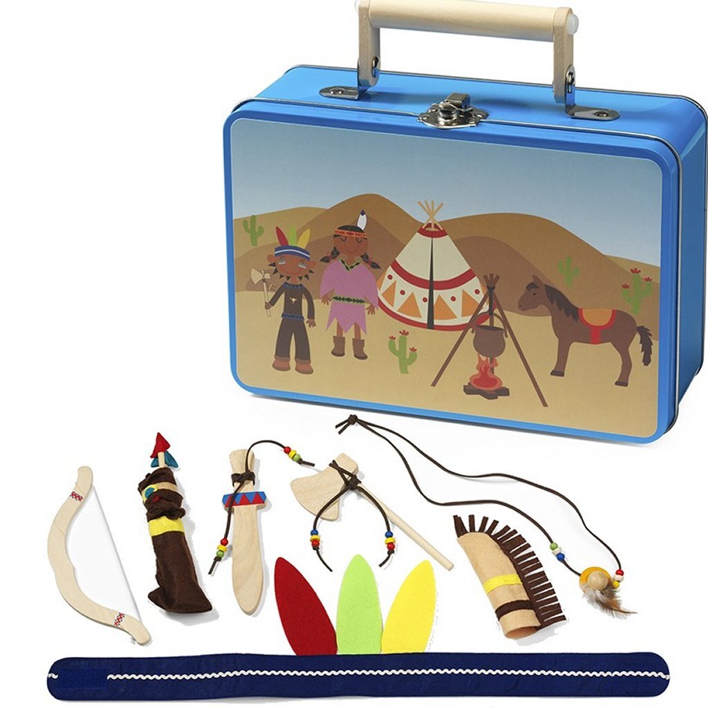 Indianengeluiden moet je er zelf bijmaken en de Tipi paste ook net niet in dit koffertje, maar verder is het helemaal compleet!