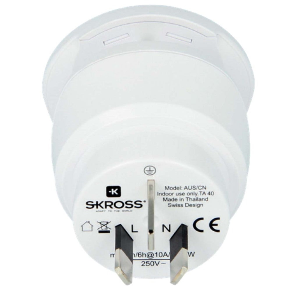 De combo-landadapters van SKROSS zijn de ideale oplossing voor reizigers uit de hele wereld die een specifiek reisdoel hebben, maar die ook regelmatig Europa (aardcontact) bezoeken. Ideaal voor hotels en congrescentra die hun gasten de mogelijkheid willen bieden om hun apparaten aan te sluiten gedurende hun verblijf. Met de combo-landadapter wereld naar Australië/China kunnen apparaten uit meer dan 150 landen worden aangesloten in Australië, China en Europa (aardcontact). Zelfs apparaten die veel stroom verbruiken, zoals laptops en föhns, worden veilig ondersteund.