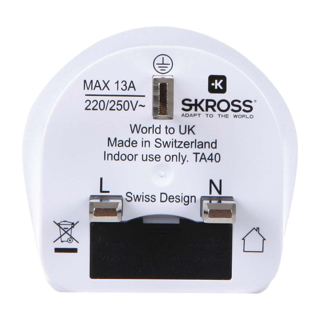 The country adapters from SKROSS are the ideal solution for travellers, who prefer a specific travel destination as well as for hotels and conference centres to provide their international guests the possibility of connecting their devices. With the country adapter world to UK devices from more than 150 countries are applicable in the UK. It safely supports even power–hungry devices like laptop and hairdryer.