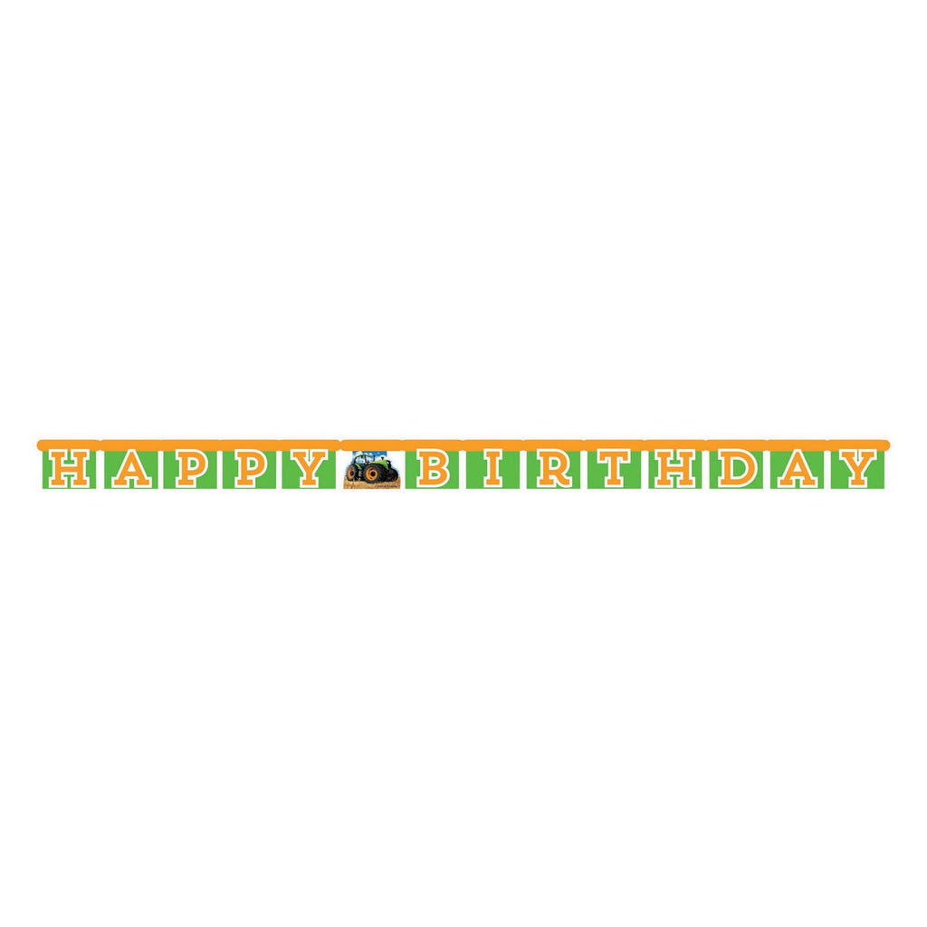 Kartonnen letterbanner/verjaardagsslinger in het thema 'tractor time'. De banner bevat de tekst 'Happy Birthday' en heeft een lengte van 170cm. Leuk om te combineren met de andere feestartikelen uit de Tractor Time-lijn!