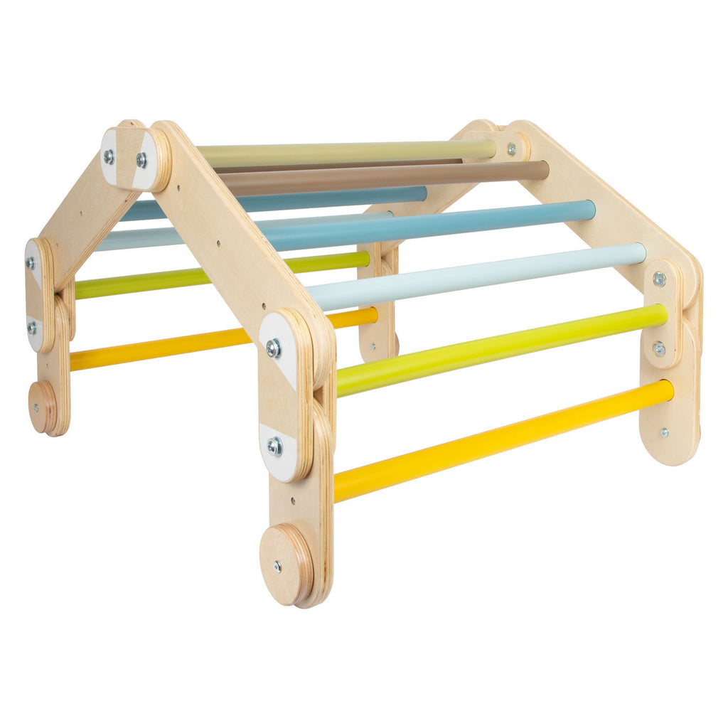 Deze klimdriehoek is een echt multitalent van een oefenspeelgoed dat geen grenzen stelt aan de creativiteit van jonge klimprofessionals! Zelfs jongere kinderen kunnen de driehoek gebruiken voor hun eerste pogingen om op te staan, terwijl oudere kinderen de spijlen kunnen beklimmen en extra grotten, tunnels, bruggen en huizen kunnen bouwen. Door de verschillende opstellingsmogelijkheden van de triangel kan deze op verschillende manieren worden gebruikt, afhankelijk van de leeftijd en het vermogen van de kinderen. Afzonderlijk te gebruiken of als onderdeel van een creatieve hindernisbaan bestaande uit oefenspeelgoed uit de productlijn "Adventure". Door thuis in een veilige omgeving te klimmen en te spelen, kunnen zelfs jongere kinderen hun evenwicht, behendigheid, kracht en coördinatie trainen. Dankzij het basisontwerp, de eenvoudige vormen en de grote hoeveelheid natuurlijk hout kan deze driehoek gemakkelijk in elke woonkamer of kinderkamer worden geïntegreerd! Ook geschikt voor therapeutische doeleinden! Let op: dit is één onderdeel als je de set wilt uitbreiden zijn de andere delen los verkrijgbaar. Zie artikelserie rechts naast het artikel.