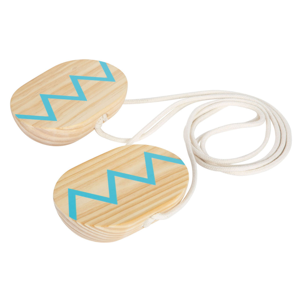 Op je klossen, maak je klaar, ga! Deze houten loopklossen met een 'actief' ontwerp zorgen voor veel buitenspeelplezier terwijl je je evenwicht en motoriek traint. Afhankelijk van de gewenste moeilijkheidsgraad kunnen de klossen met de platte zijde of de afgeronde zijde naar de grond gericht worden gebruikt. De platte kant biedt beginners meer stabiliteit om mee te beginnen, de meer ervaren profs kunnen de afgeronde zijkanten gebruiken en zichzelf meer uitdaging geven, wat betekent dat dit toestel kan worden gebruikt op een manier die past bij de leeftijd en het vermogen van de kinderen. Het touw zorgt ervoor dat de gebruiker zich kan vasthouden en kan worden aangepast aan de grootte van het kind met de knopen in het uiteinde van de greep.