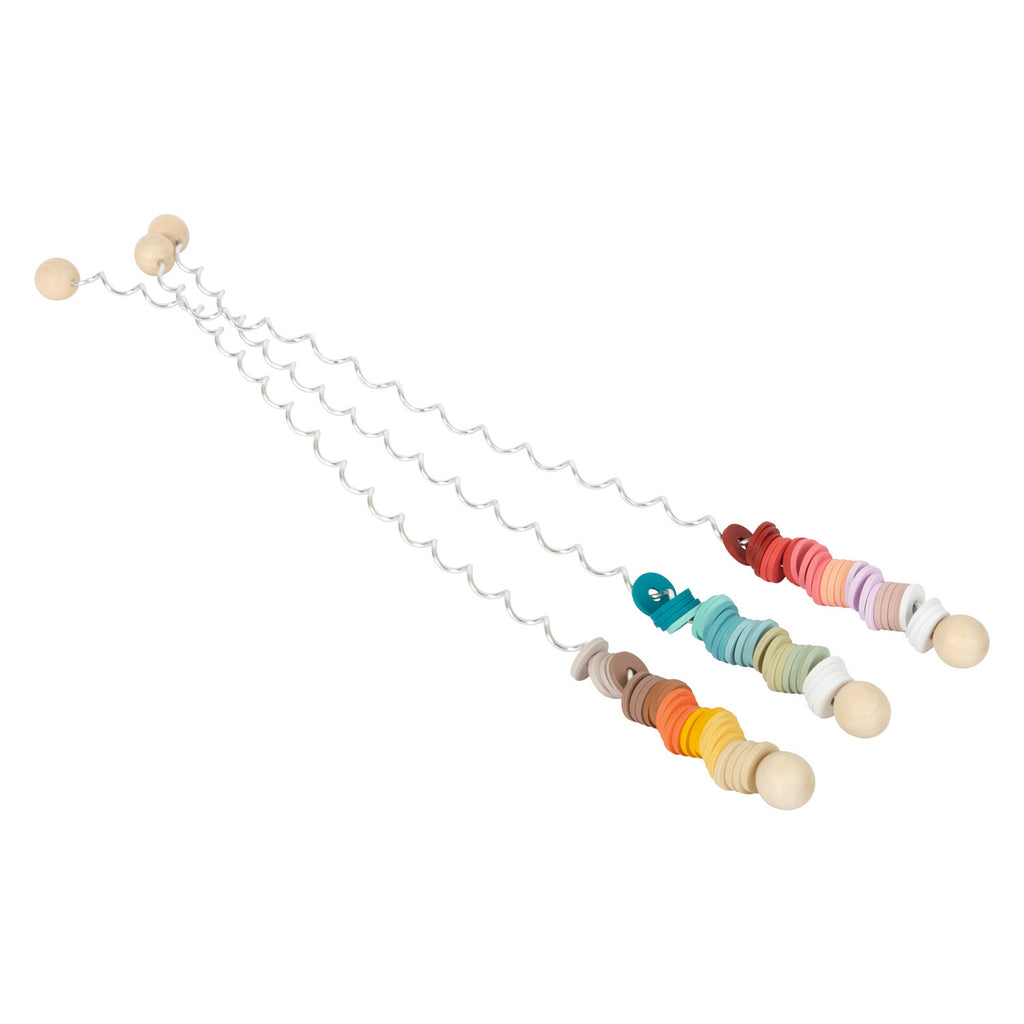 Een blikvanger voor alle leeftijden! Wanneer de qua kleur gecoördineerde houten schijven soepel over de metalen spiraalbanen van dit houten speelgoed rollen, ontstaat er een fascinerende visuele weergave van kleuren en een zacht geluid. Wanneer de paalbaan constant heen en weer wordt bewogen, ontstaat er een visuele show die zowel boeiend als zeer rustgevend is voor kinderen. Een leuk houten speelgoed in moderne kleuren met een meditatief effect dat ideaal is om in slaap te vallen! Traint ook de oog-handcoördinatie.