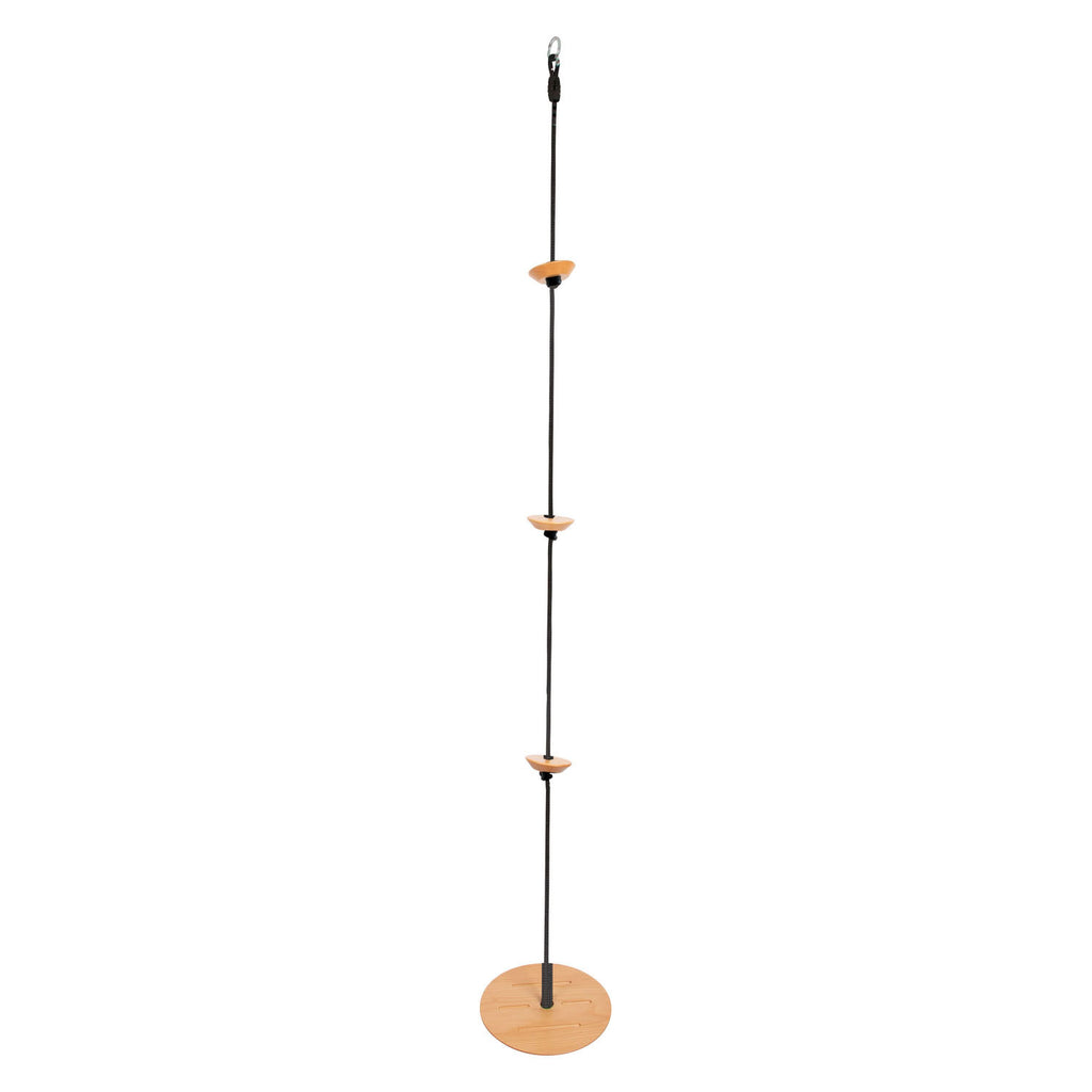 Deze hoogwaardige combinatie van schijfschommel en klimtouw combineert schommel- en klimplezier en ziet er daarbij geweldig uit! Het klimtouw heeft een mooie zwarte kleur en heeft drie ronde voetsteunen van robuust massief hout waarmee kinderen gemakkelijk kunnen klimmen, terwijl de schijfschommel aan de onderkant van het klimtouw geweldig is om mee te slingeren. Het schommelzitje is voorzien van ribbels om uitglijden te voorkomen. Wordt geleverd met een stevige ring om aan klimuitrusting op te hangen. Wie kan als eerste de top bereiken?