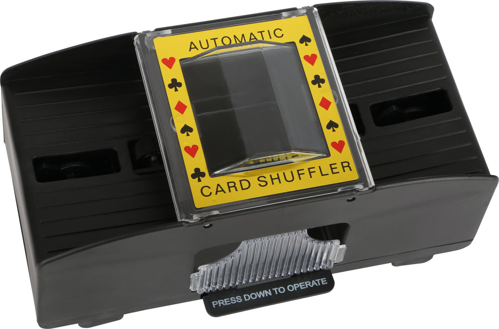 De kaartschudder wordt aangedreven door vier meegeleverde AA-batterijen, zodat je onmiddellijk na ontvangst kunt beginnen met spelen. De batterijen zijn eenvoudig te vervangen, waardoor de kaartschudder altijd klaar is voor het volgende spel.