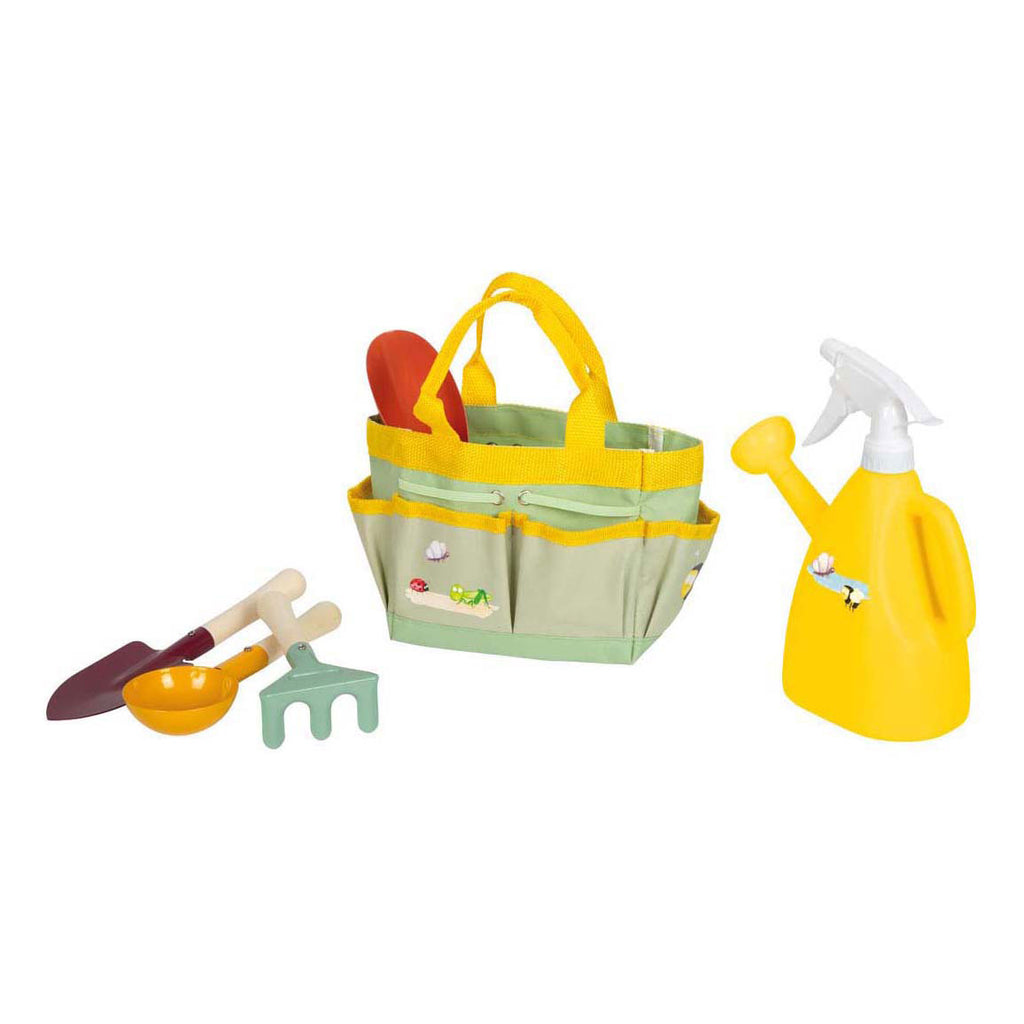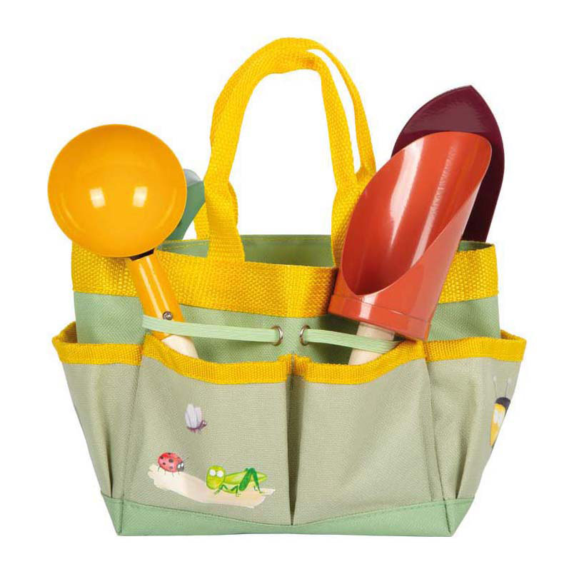 De handige “Tiny Garden” tuintas maakt van tuinieren, graven en spelen een groot avontuur! Deze tas heeft een groot hoofdvak en handige buitenvakken zodat kleine tuiniers van alles kunnen opbergen. Met vier kleurrijke gereedschappen van metaal en hout en een slimme 2-in-1 gieter/sproeifles hebben kinderen alles wat ze nodig hebben voor de tuin, het strand of de zandbak. Praktisch, duurzaam en een echte blikvanger met zijn kleuren en schattige dierenmotieven - zo wordt buitenpret pas echt leuk!