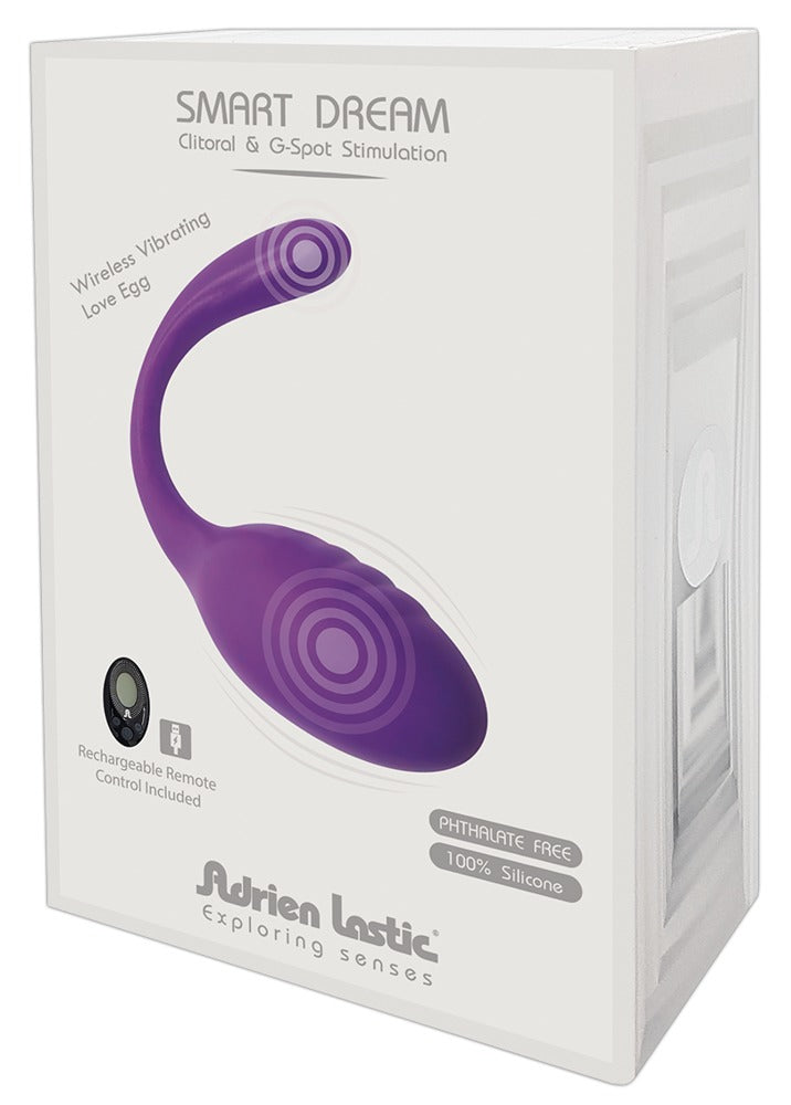 Het vibro-ei van zacht siliconenmateriaal wordt als een oplegvibrator op de clitoris geplaatst, terwijl tegelijkertijd de ergonomisch gebogen arm wordt ingebracht - overigens ook parallel aan de penis, zodat de Smart Dream in een mum van tijd een koppelspeeltje wordt! Bij solospel kun je natuurlijk ook het vibrerende eitje inbrengen en de lange arm gebruiken als clitorisstimulator - zowel het eitje als het uiteinde van de arm bevatten een krachtige motor met 10 vibratieritmes die heel slim worden aangestuurd via de bijgeleverde draadloze afstandsbediening.