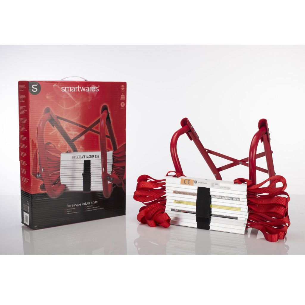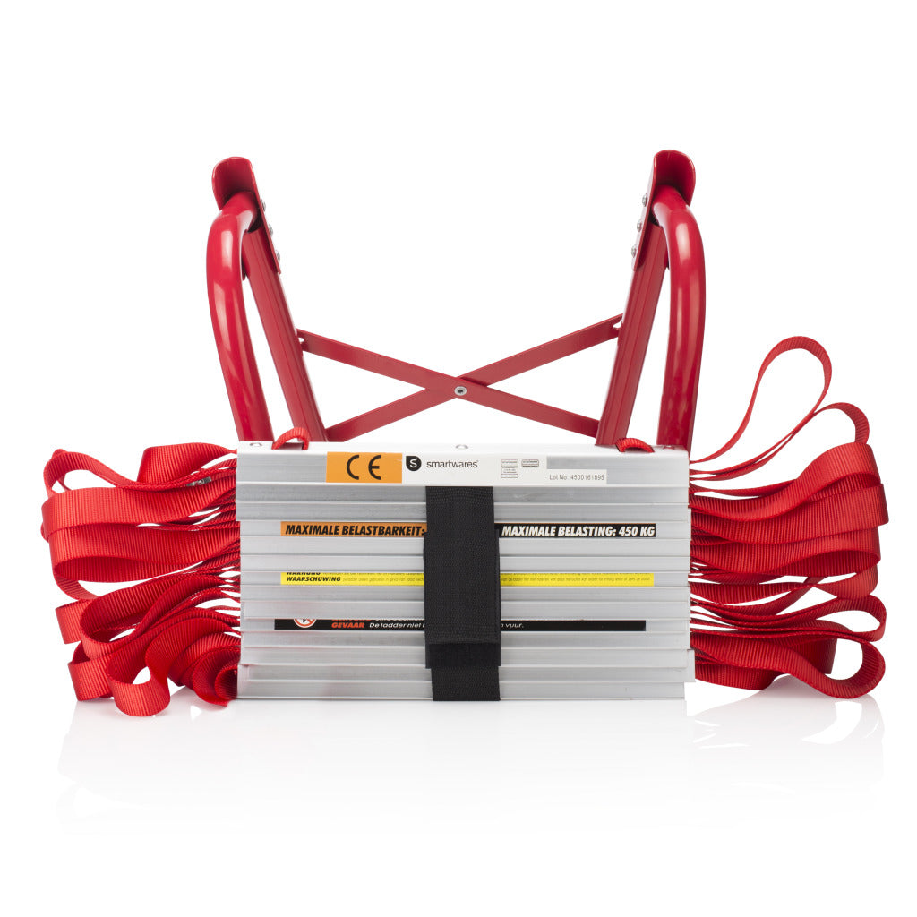 Met de Smartwares BBVL Vluchtladder kun je uit huis ontsnappen wanneer er brand uitbreekt. De ladder heeft een lengte van 4,5 meter en is daardoor ideaal om van de eerste verdieping naar beneden te vluchten. De ladder heeft een capaciteit van 450 kg waardoor je met meerdere personen tegelijkertijd kunt afdalen.Altijd voorbereid