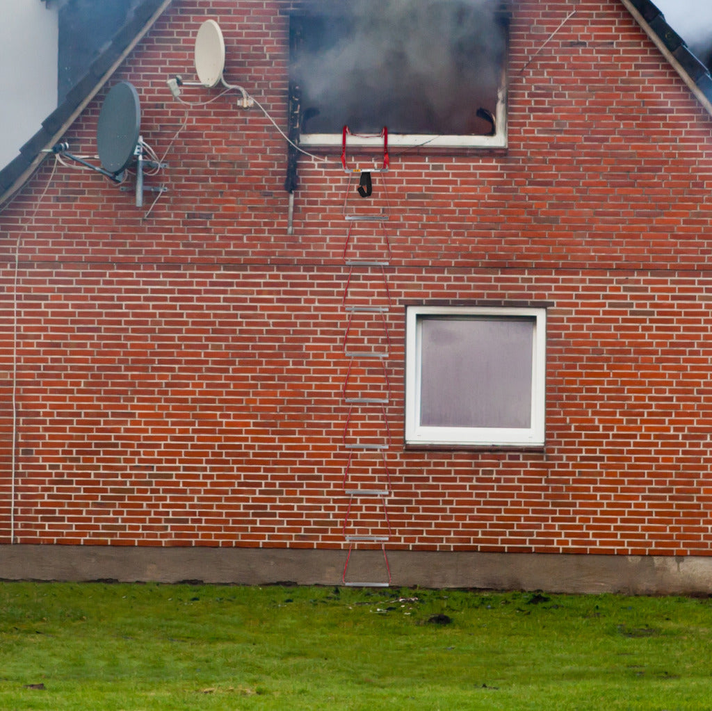 Een vluchtladder kan levens redden als er brand uitbreekt op de begane grond en alle trappen en uitgangen worden geblokkeerd. De ladder wordt stabiel opgehangen aan het raamkozijn dankzij de universele haken. De ladder heeft een lengte van 4,5 meter en tussen iedere trede zit een afstand van 33 cm, hierdoor kun je eenvoudig afdalen. Het uitrollen van de ladder gebeurt geheel knoopvrij waardoor je snel kunt handelen en jezelf en anderen in veiligheid kunt brengen. Door goed voorbereid te zijn op gevaarlijke situatie kan veel paniek voorkomen worden.Inhoud van de verpakking: