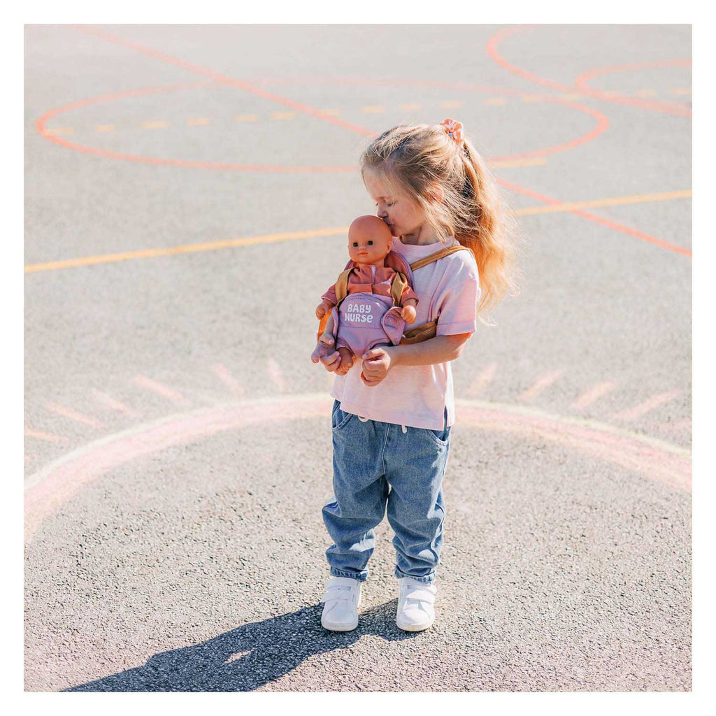Textielen draagzak voor poppen van circa 42 cm uit de Baby Nurse-lijn van Smoby. Uitgevoerd in roze en oranje, met verstelbare schouderbanden. Geschikt voor kinderen vanaf 3 jaar.