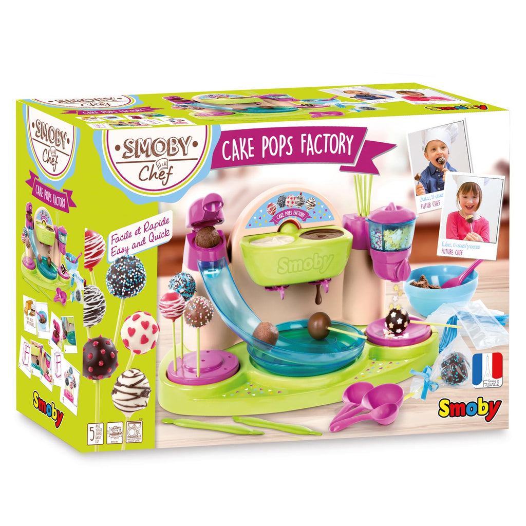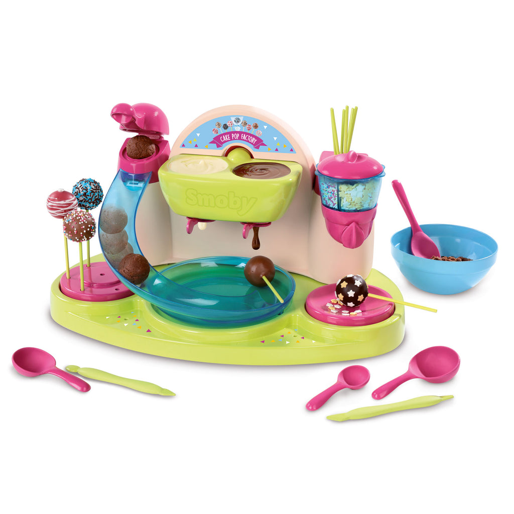 Bakkers klaar? Bakken maar! Met deze cakepopfabriek van Smoby maak je helemaal zelf of samen met je vriendjes de lekkerste cakepops. Stop het deeg in de balvormer, prik het stokje erin, zet de chocoladekraan open en versier de lolly's zo mooi als je kunt. Smullen maar! Inclusief versierlintjes, cadeauzakjes en meer dan 16 accessoires. Ingrediënten niet inbegrepen.