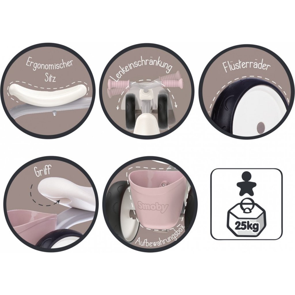 Zodra het kind zijn eerste stapjes zet, zijn ze klaar om een ??versnelling hoger te schakelen met hun allereerste voertuig. Snelheid winnen, draaien, stoppen, achteruit rijden ... Zoveel dingen om te begrijpen en te beheersen. Kinderen ontwikkelen zonder het te beseffen hun motoriek, behendigheid en zelfvertrouwen. Deze metalen drager van de eerste leeftijd met 4 stille wielen (EVA) is bestand tegen elke test. De beperkte stuuruitslag zorgt voor veiligheid en maximale stabiliteit bij het verplaatsen.
