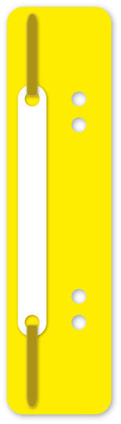 Snelhechterstrip, vervaardigd uit PP. Korte uitvoering: afmeting 38 x 148 mm. Met metalen strip en kunststof afdekplaatje. De snelhechterstrip is voorzien van 4 ponsgaten waardoor deze in een ordner of ringband kan worden gehangen. Kleur geel.
