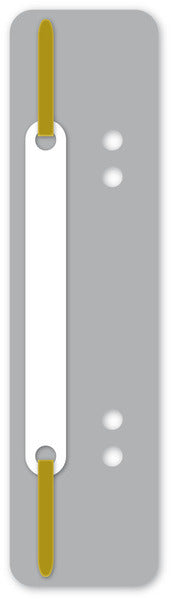 Snelhechterstrip, vervaardigd uit PP. Korte uitvoering: afmeting 38 x 148 mm. Met metalen strip en kunststof afdekplaatje. De snelhechterstrip is voorzien van 4 ponsgaten waardoor deze in een ordner of ringband kan worden gehangen. Kleur grijs.