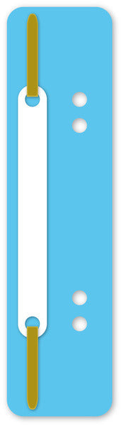 Snelhechterstrip, vervaardigd uit PP. Korte uitvoering: afmeting 38 x 148 mm. Met metalen strip en kunststof afdekplaatje. De snelhechterstrip is voorzien van 4 ponsgaten waardoor deze in een ordner of ringband kan worden gehangen. Kleur lichtblauw.