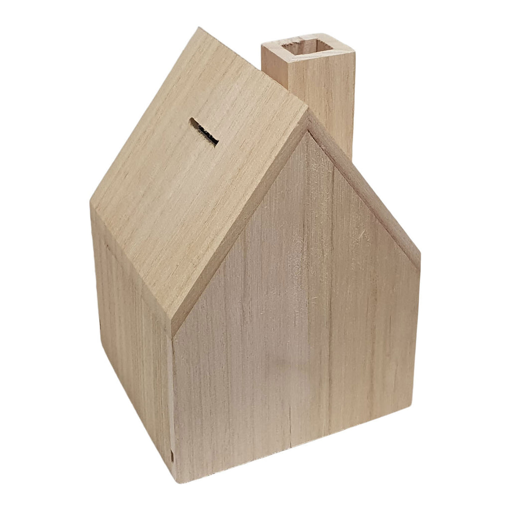 Spaarpot huisvorm paulownia hout. B 10,8 CM x D 10,7 CM x H 15 CM