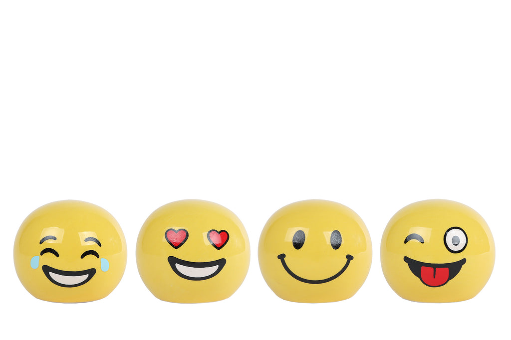 Spaarpot Smile geel aardewerk 7,5x7,5x6,5cm 4 assort