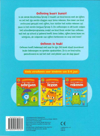 Oefening baart kunst! Het eerste leerjaar/groep 3 is een echte mijlpaal: op enkele maanden tijd leert uw kind rekenen! En hoe meer uw kind oefent, hoe vlotter dat zal gaan. De rekenoefeningen in dit boek volgen het schoolleerprogramma zodat uw kind thuis verder kan oefenen wat het op school geleerd heeft: cijfers schrijven, getallen splitsen, sommen maken, eenvoudige rekenraadsels oplossen en nog veel meer. Oefenen is leuk! Oefenen hoeft helemaal niet saai te zijn. Dit boek staat boordevol leuke tekeningen en speelse opdrachten. Zo is uw kind extra gemotiveerd en zal het met veel plezier aan de slag gaan!