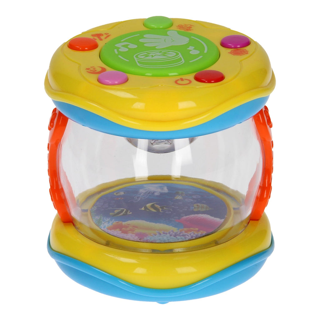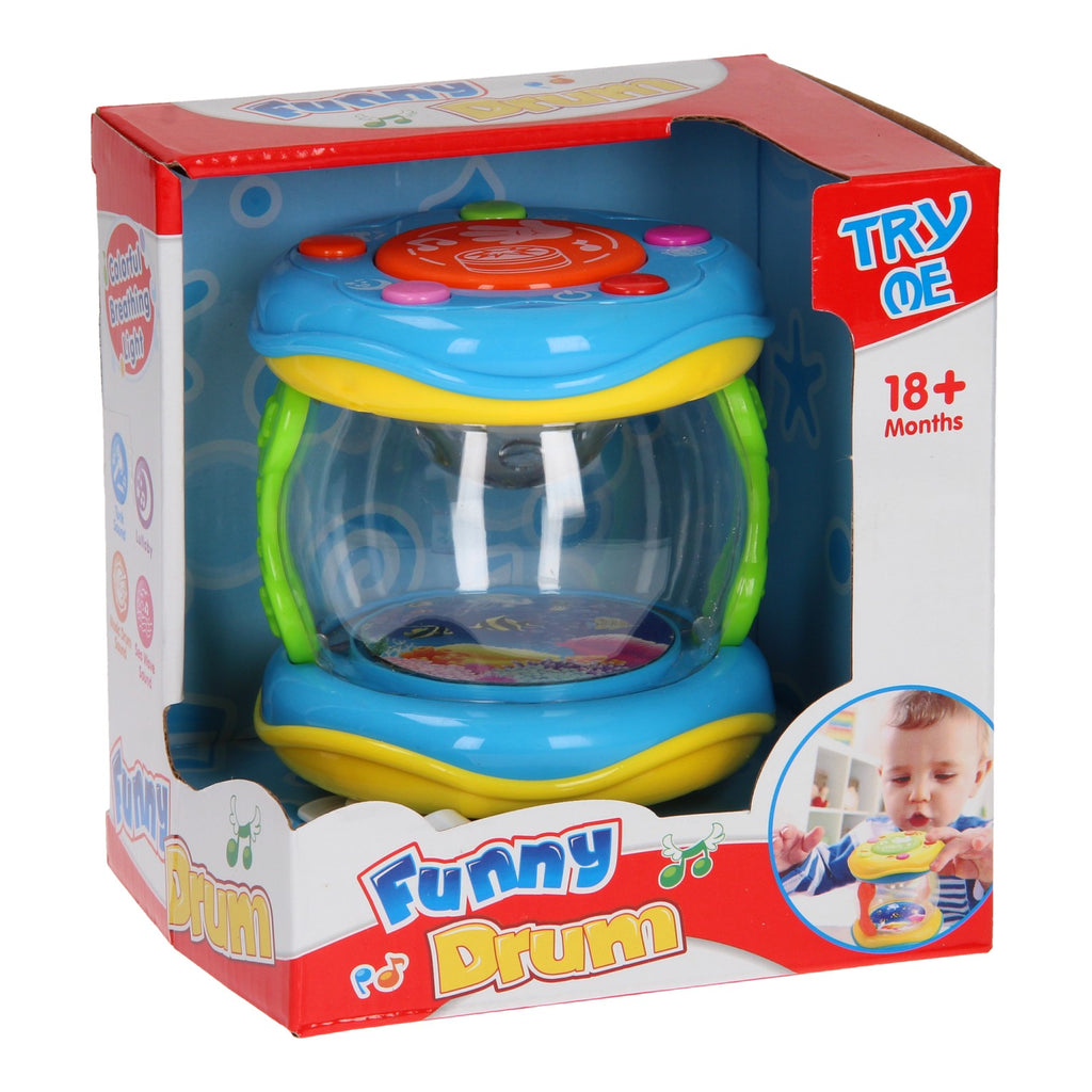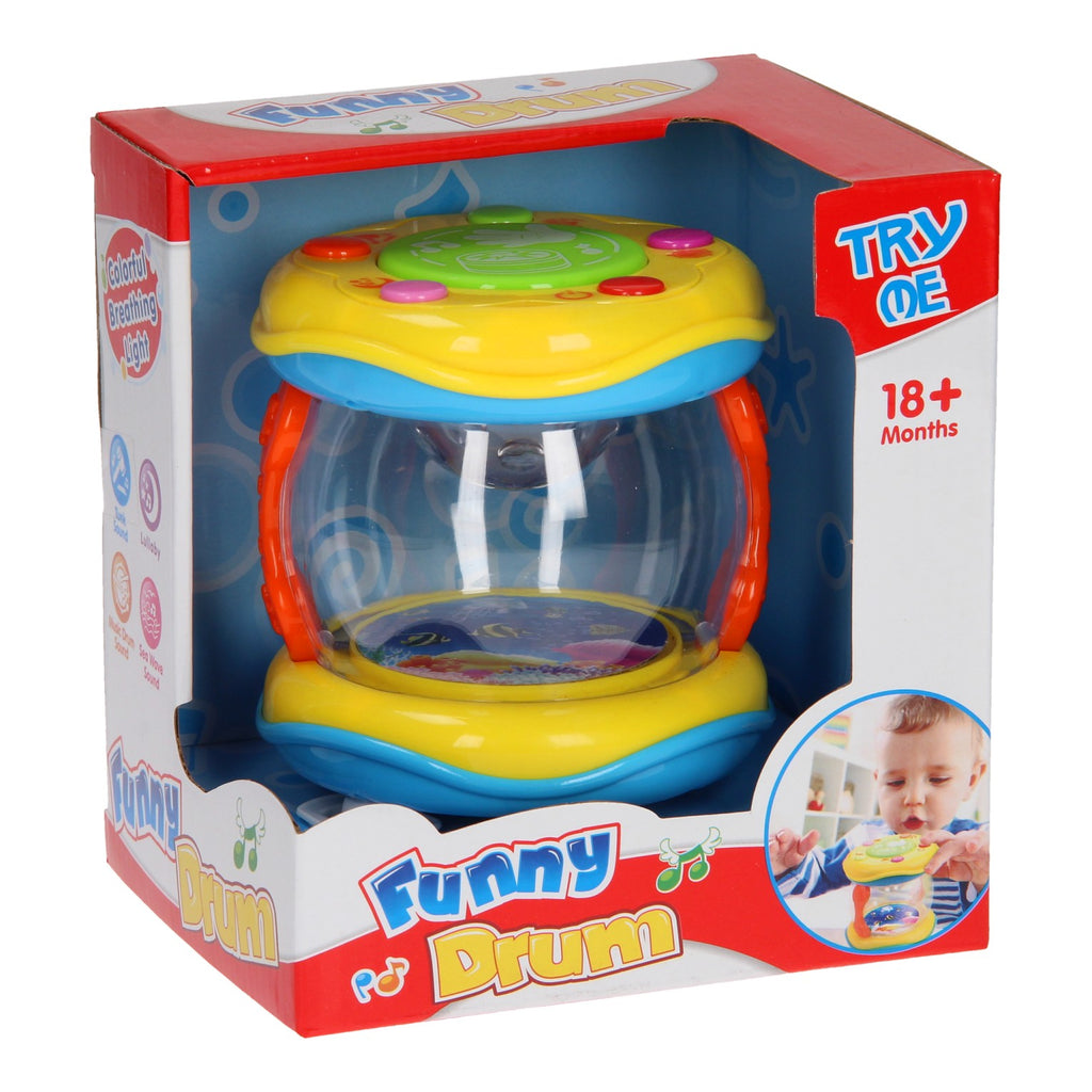 Dit drum speelinstrument heeft vele leuke functies. Druk aan de bovenkant op de grote groene knop en hoor verschillende leuke geluidjes, muziekjes en een slaapliedje. Het leuke aan de drum is dat deze van een lichtgevend bolletje is voorzien. De drum is geschikt voor 18+ maanden en werkt op 2x AAA batterijen (batterijen zijn inbegrepen).