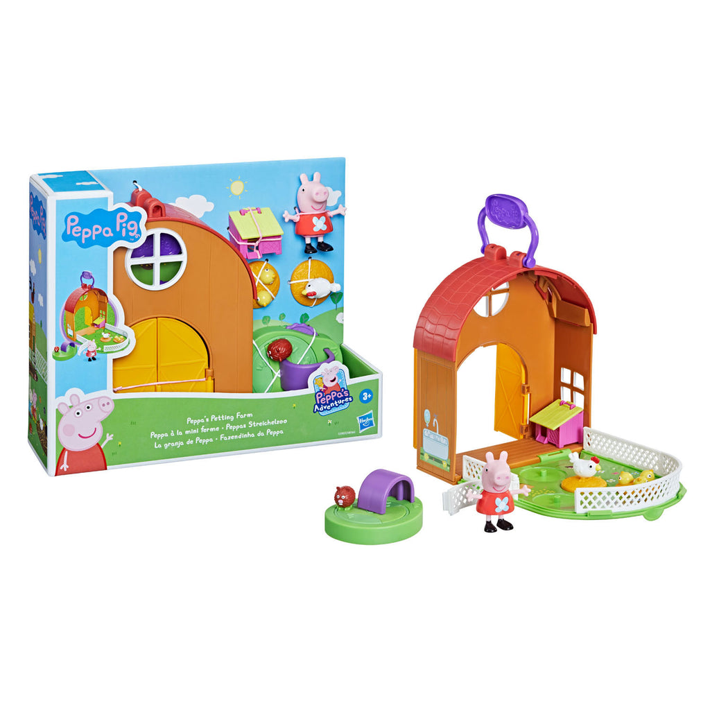 Peuters en fans van Peppa Pig vanaf 3 jaar zullen er dol op zijn om hun favoriete vrijpostige varkentje te zien op een locatie geïnspireerd op de animatieserie. De speelset Peppa's kinderboerderij bevat een kippenren en een gedeelte voor de cavia. Kinderen kunnen zich voorstellen dat Peppa de cavia aait en de kippen voedert (of de schattige kuikentjes vasthoudt!). Thematische accessoires dragen bij aan het boerderijplezier en helpen om de verbeelding van jonge kinderen te stimuleren. Alles past in de speelset zodat alles in een oogwenk is opgeborgen of makkelijk kan worden meegenomen op verplaatsing. Hasbro en alle gerelateerde termen zijn handelsmerken van Hasbro.