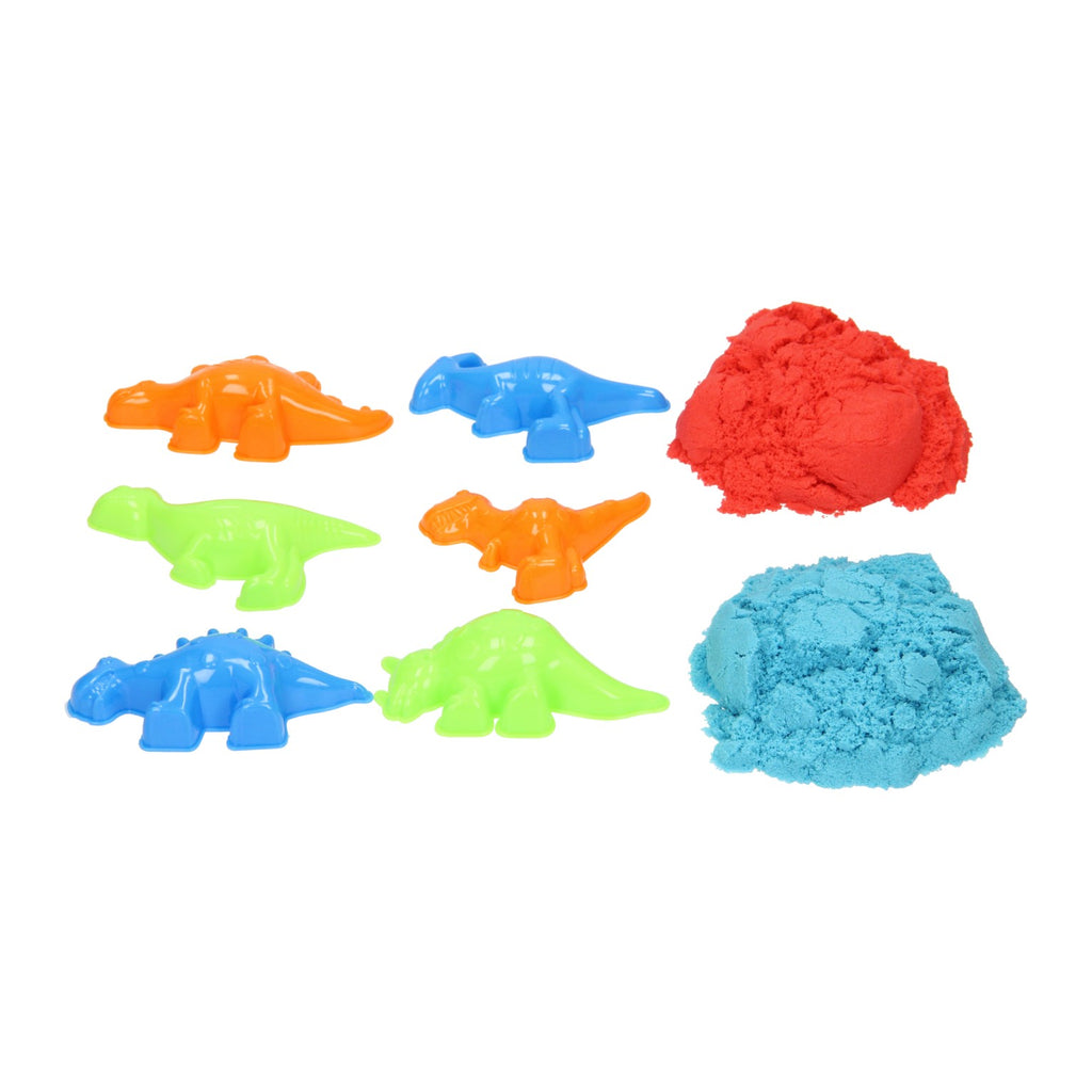 Maak verschillende dino's van speelzand met deze stoere set. De set bestaat uit 6 vormen van dino's en 2x 200 gram aan speelzand. Geschikt voor kinderen vanaf 3 jaar.