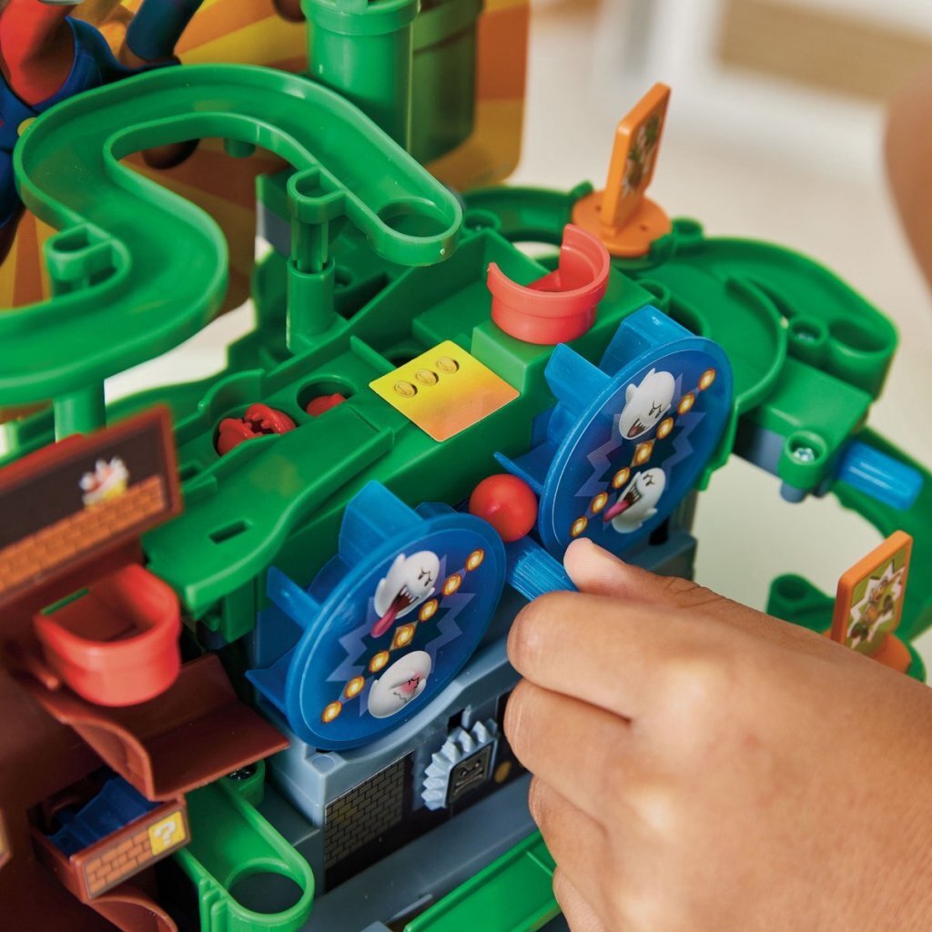 Spannend actiedoolhof ontworpen en geïnspireerd door de wereld van Super Mario! Lever jer knikker voorzichtig af met behulp van de 3 knoppen en 2 draaiende wielen die door de 7 lastige zones gaan om het doel te bereiken! Veel trucjes en bewegingen zonder batterijvoeding. Geweldige keuze voor verjaardag en vakantie cadeaus! Voor 1 speler tegelijk. Je kunt de speelwaarde opwaarderen door simpelweg de karakterplaat te wisselen naar een van de figuren uit LINK SYSTEM-spellen (apart verkrijgbaar)! Geschikt voor kinderen vanaf 5 jaar.