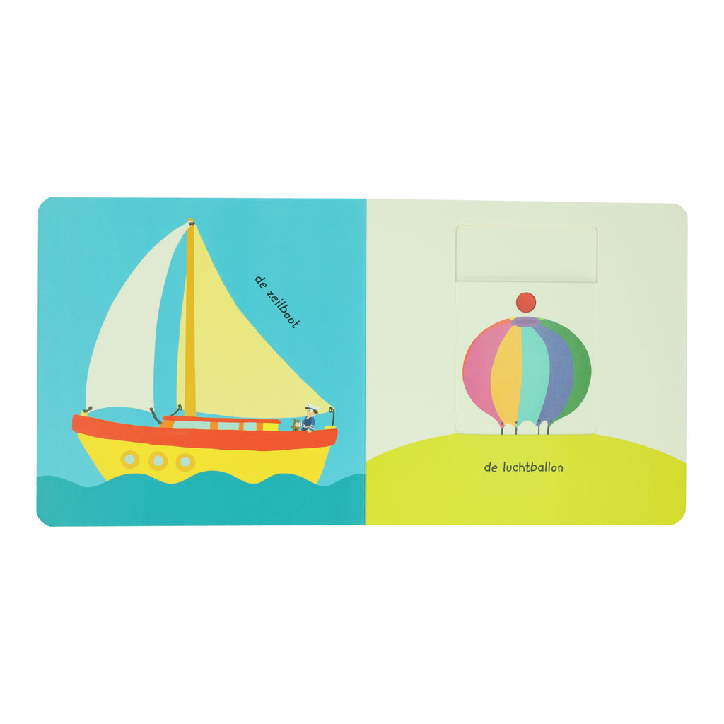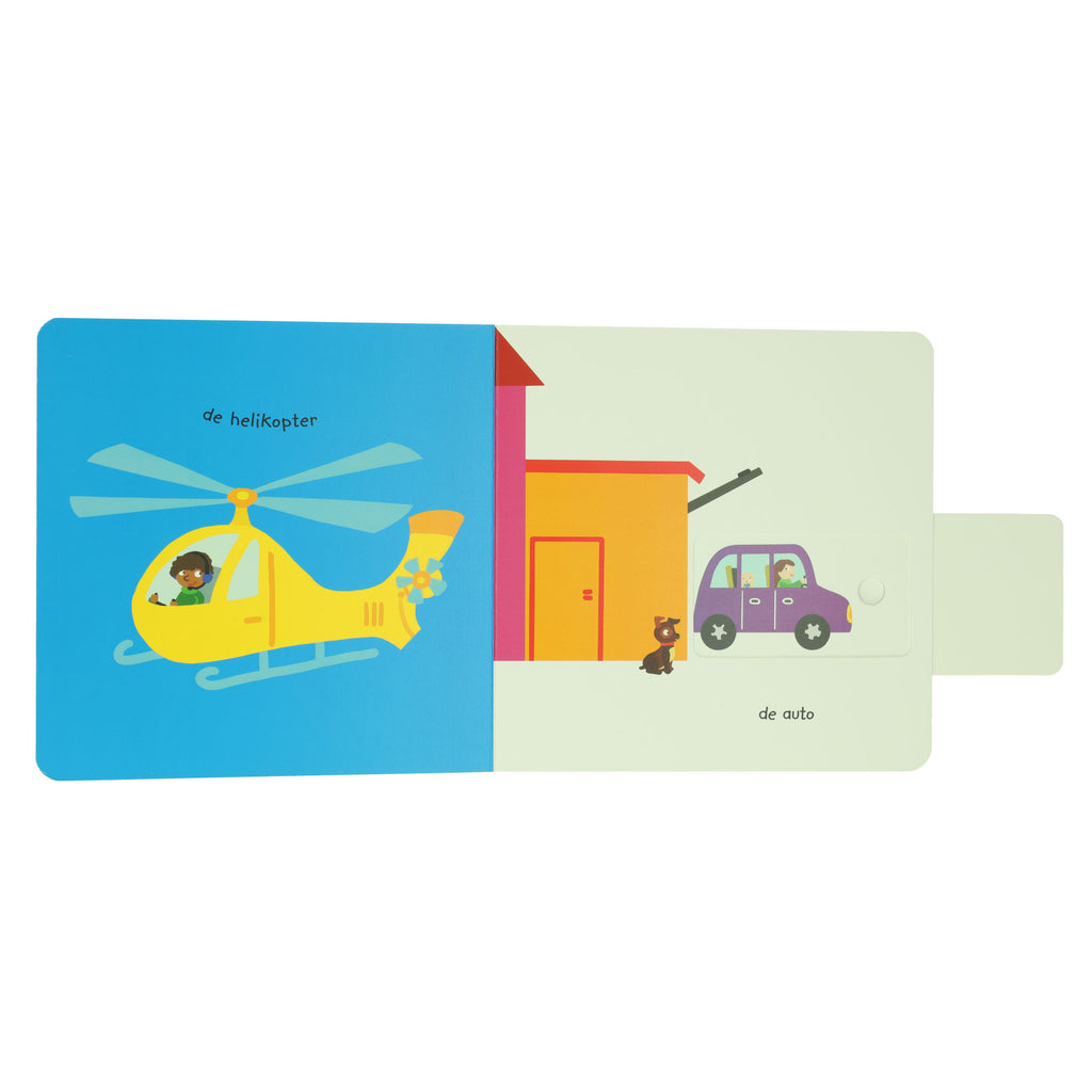 Stevig kartonboek met schuifelementen over voertuigen. Stimuleert fijne motoriek, spraakontwikkeling en waarneming. Geschikt voor kinderen vanaf 12 maanden.