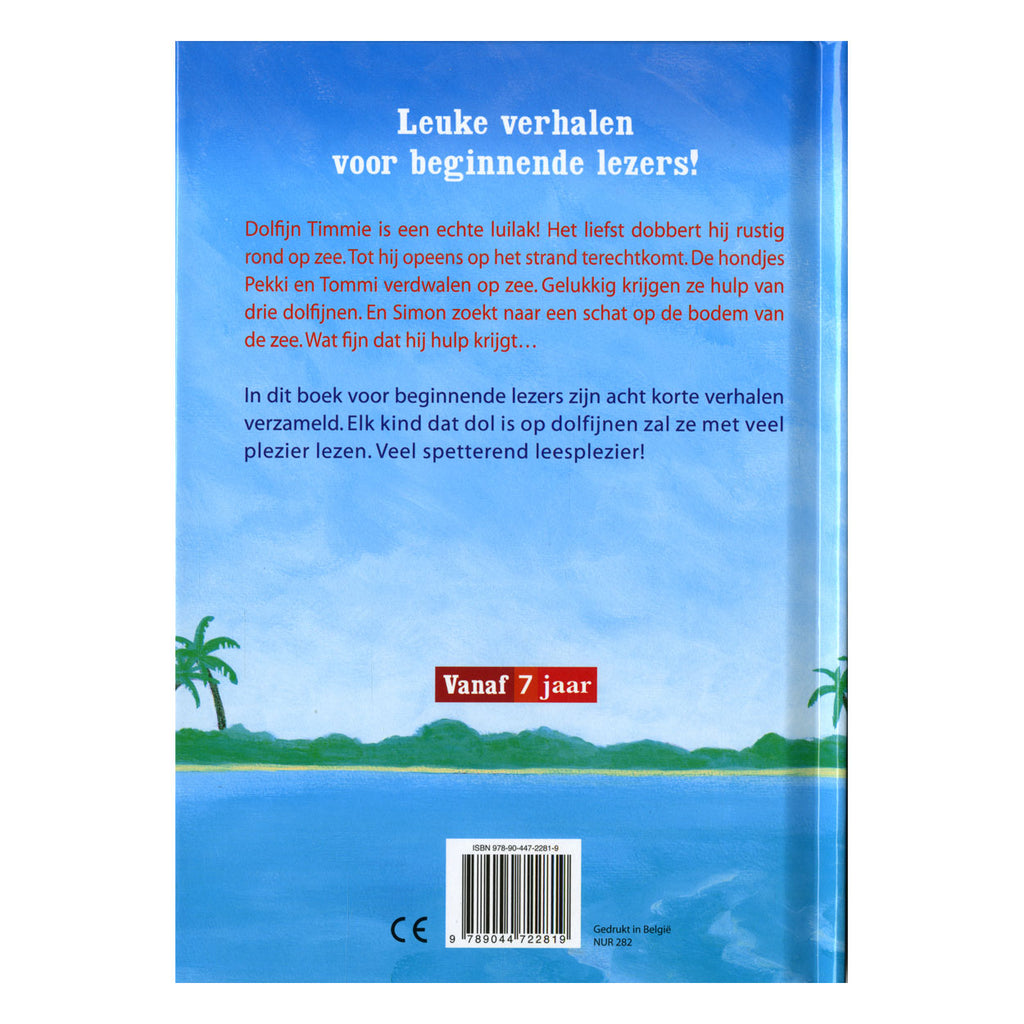 Dolfijn Timmie is een echte luilak! Het liefst dobbert hij rustig rond op zee. Tot hij opeens op het strand terechtkomt. Ook de hondjes Pekki en Tommi verdwalen op zee. Gelukkig krijgen ze hulp van drie dolfijnen. En Simon zoekt naar een schat op de bodem van de zee. Wat fijn dat hij hulp krijgt… In dit boek voor jonge lezers zijn acht korte verhalen verzameld. Elk kind dat dol is op dolfijnen zal ze met veel plezier lezen. Schrijver: Marliese Arold. Inhoud: 60 pagina's. Veel spetterend leesplezier! Geschikt voor kinderen vanaf 7 jaar.