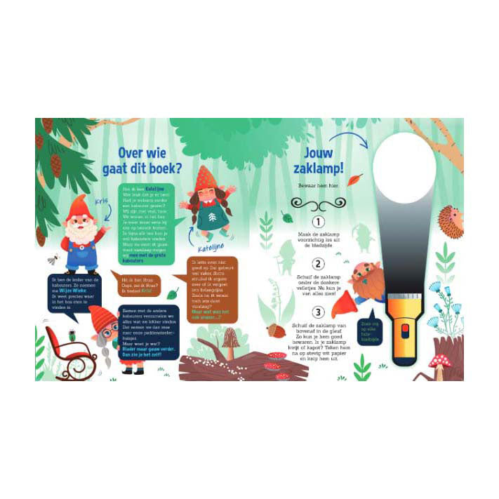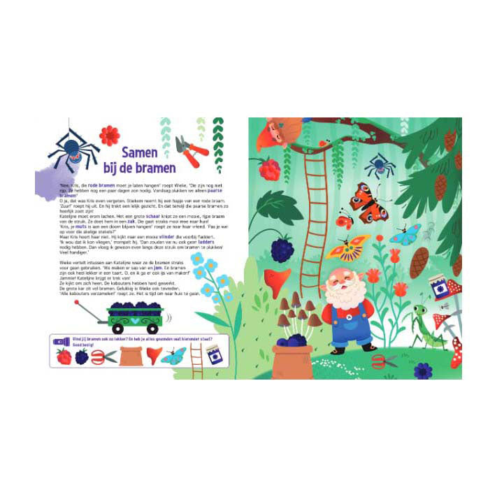 Hoe komen kabouters eigenlijk aan hun eten? In dit boek ontdek je wat ze allemaal vinden in het bos. Volg de vrolijke kabouters Katelijne en Kris, die een dagje mee op pad mogen met de andere kabouters. Speur jij mee?
