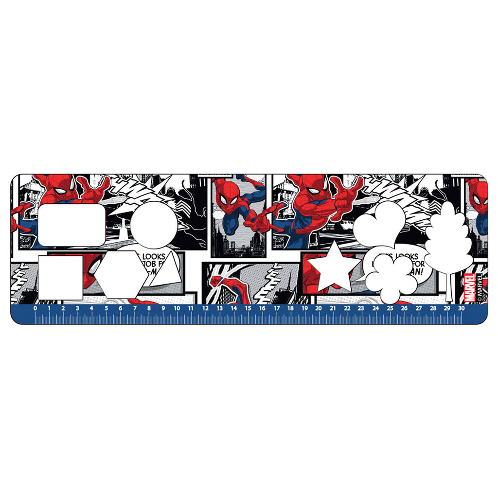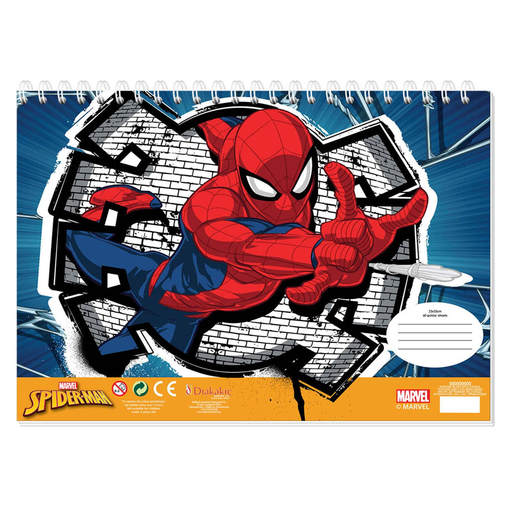 Schilder of kleur deze tekeningen van Spiderman. Plak de verschillende stickers op de tekeningen. Aan de buitenkant van het schetsblok zit een liniaal van 30 centimeter lang, en uitsparingen in verschillende vormen, zoals een hartje, boom en vierkant, die je na kunt trekken met een stift of potlood. Het schetsboek is 33 bij 23 centimeter. Inclusief stickers en liniaal. Geschikt voor kinderen van 3 tot 6 jaar oud.