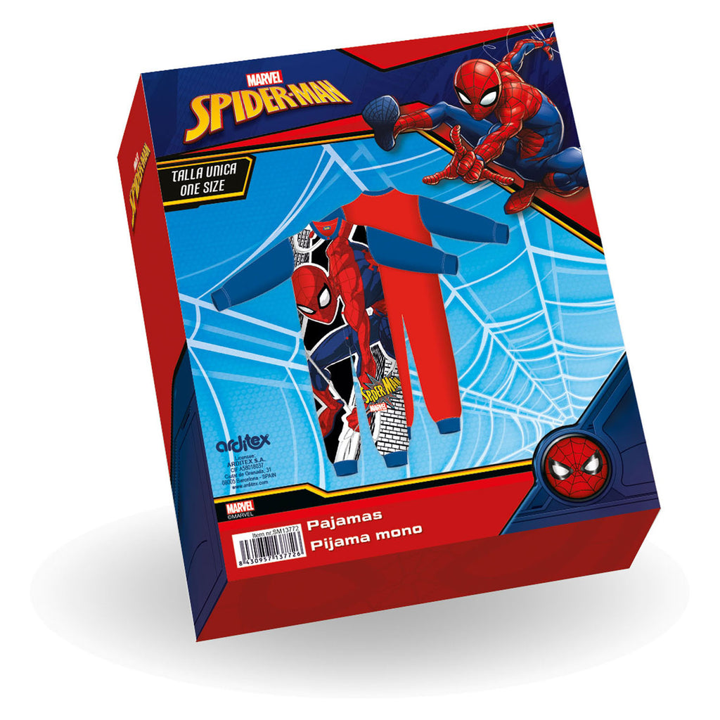 Spiderman onesie van fleecestof met ritssluiting, wassen op 40 graden.