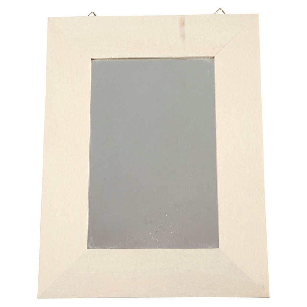 Dit vierkantje spiegeltje heeft een licht houten lijst die eventueel nog versierd kan worden. Variatie is mogelijk, want het spiegeltje kan ook vervangen worden door een foto! Inclusief ophangoogjes. Afmeting: 20,8 bij 15,9 centimeter en 0,6 centimeter dik. De uitsnede is 9,2 bij 14,2 centimeter.