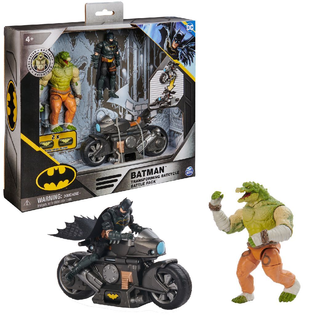 Bereid je voor op spannende avonturen in Gotham City met het Batman Transforming Batcycle Battle Pack. Maak je klaar voor epische actie in de lucht en op het land. Verander de Batcycle in de Bat-Quadcopter. Deze ongelooflijke speelset is ontworpen om compatibel te zijn met figuren van 10 cm, zodat kinderen epische veldslagen kunnen creëren en de stad kunnen redden van superschurken. De set bevat unieke 10 cm Killer Croc en Batman-actiefiguren. De Batcycle heeft 2 Batgranaten om superschurken uit te schakelen. Dit Batman-pakket is het perfecte cadeau voor Batman-fans die houden van fantasierijk spel en superheldenactie.