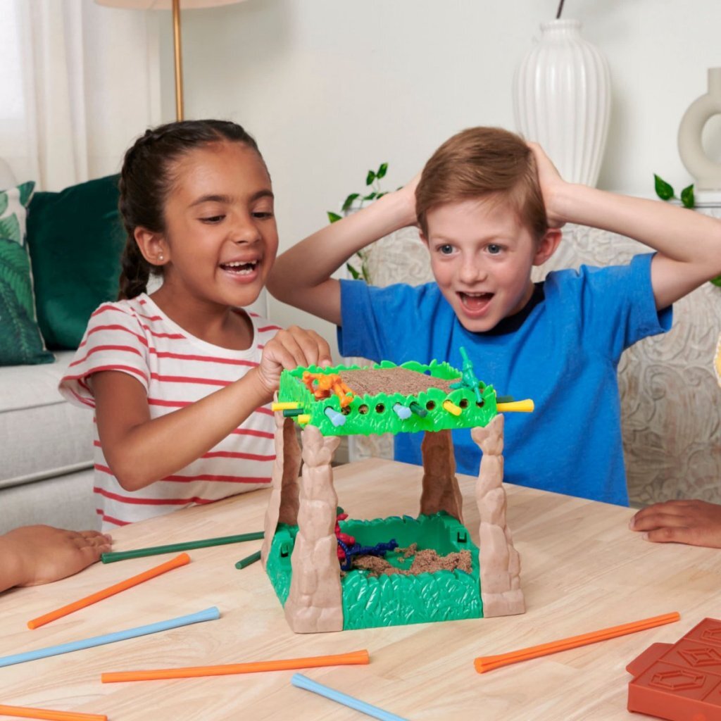 Voordat ze zelfs maar 'drijfzand' kunnen zeggen, zitten ze vast in het snel zakkende zand. Als er meer drijfzand naar beneden valt, vallen sommige ontdekkingsreizigers ook en zijn ze uitgeschakeld. Een geluksvogel kan een Redemption Ruby vinden tussen het zand om nog een kans op overleven te krijgen. Blijf als laatste staan als het drijfzand valt om het spel te winnen. Geschikt voor 2 tot 4 spelers vanaf 4 jaar.