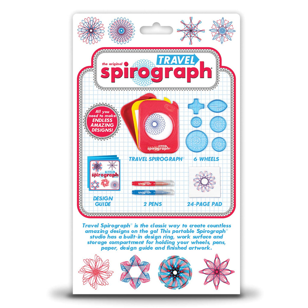 Maak de mooiste ontwerpen met deze 10-delige Hasbro Spirograph® reisset. Zet je pen in één van de schijven, rol het langs de randen van de Spirograph® en er verschijnt een prachtige tekening. In de set vind je een reis Spirograph®, 6 verschillende schijven, 2 pennen en een blok voor al je tekeningen. Inclusief handleiding.